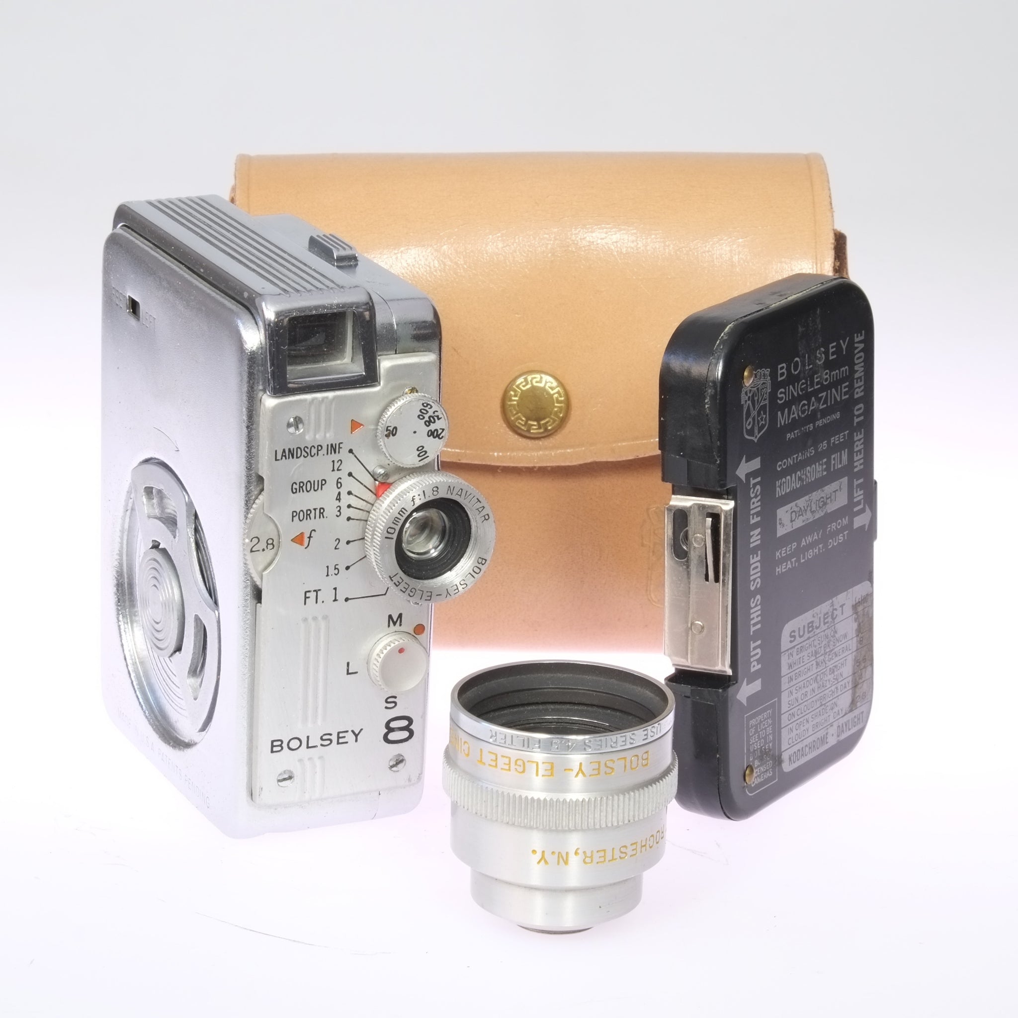 Incl. magazine for 7.5m 8mm film, bag and wide angle attachment