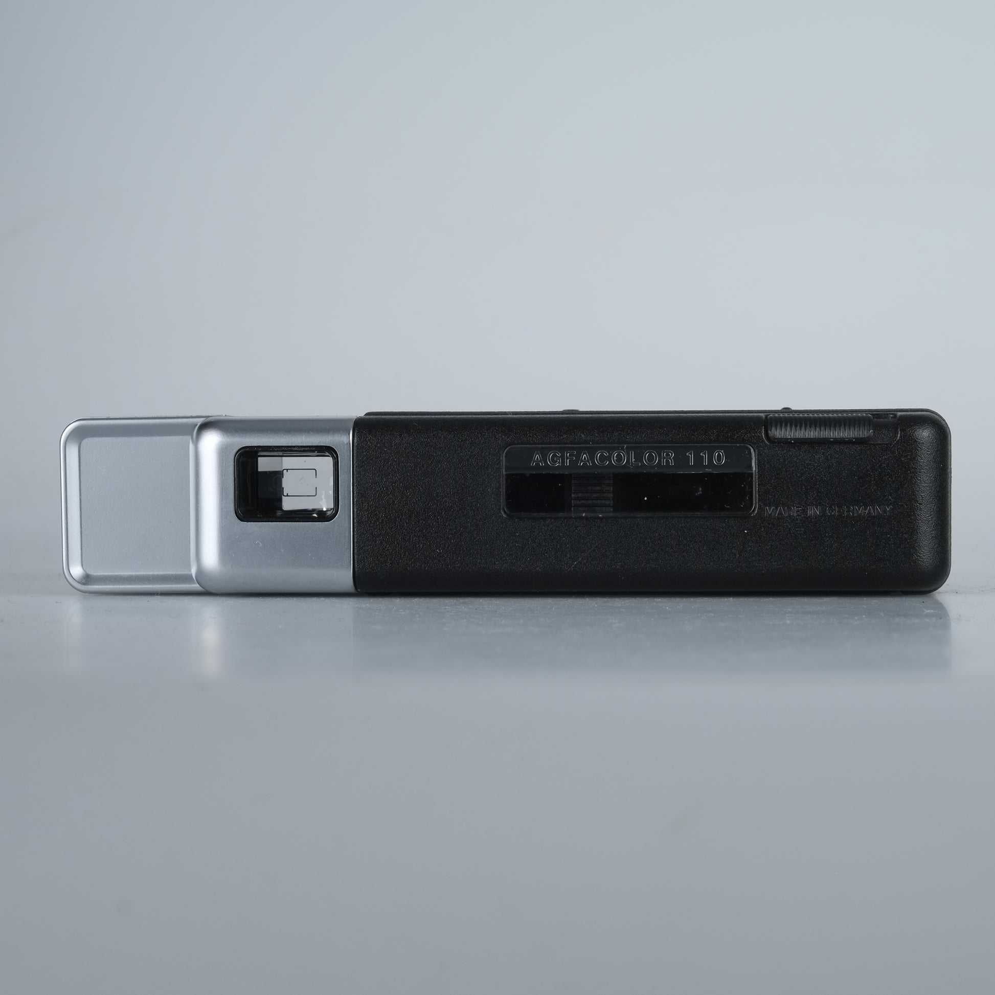 110 Pocketkamera mit Belichtungsautomatik, Verschlusszeiten 1/30 Sek. - 1/500 Sek., Manuelle Fokussierung 1.2m - Unendlich in 3 Stufen und Blitzanschluss.