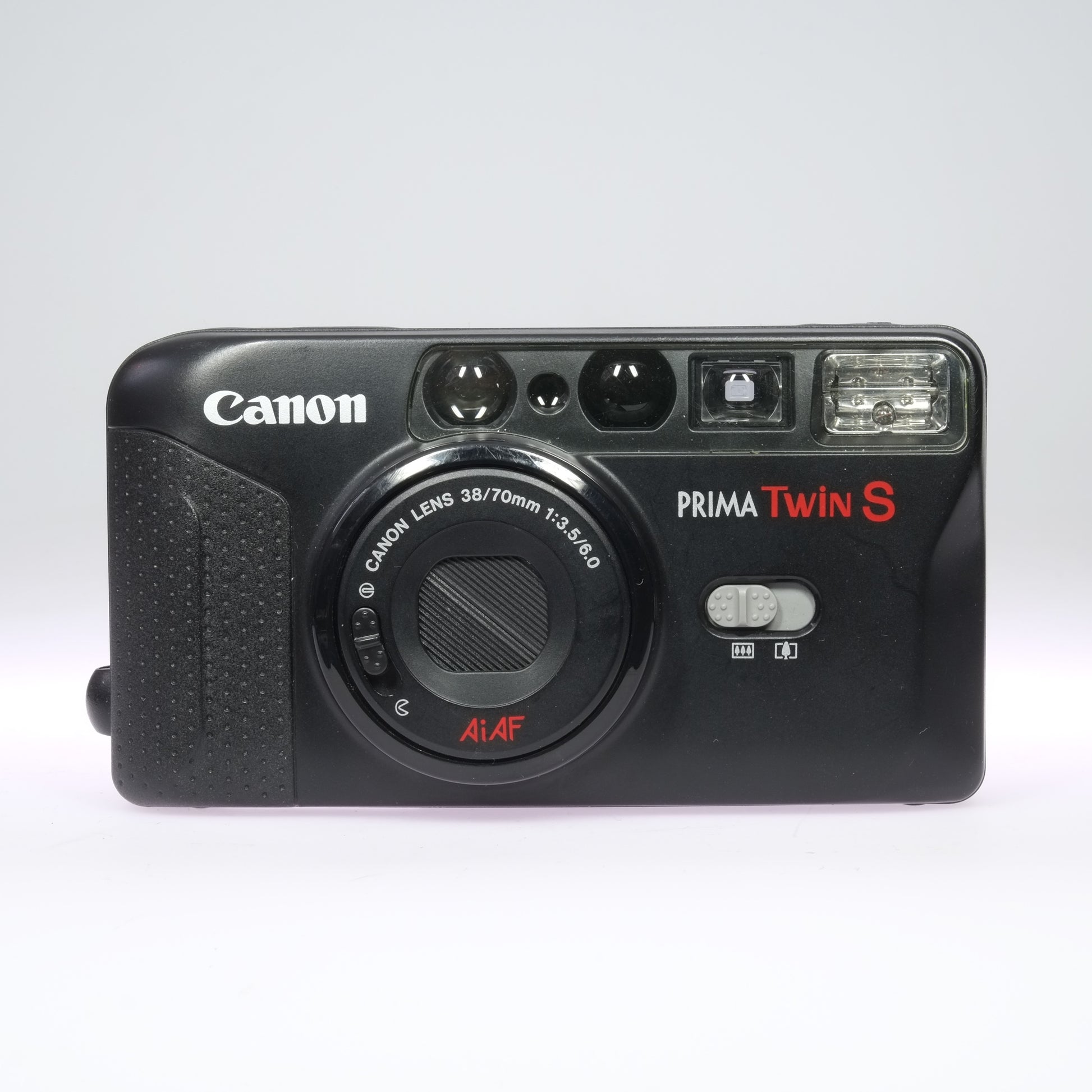 Compact viewfinder camera with a 2-focal lens, autofocus, built-in flash, and automatic film advance.