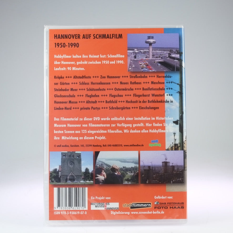 "Hannover on Narrow Film" depicts scenes from the city between 1950 and 1990. Shot by amateur filmmakers, the best scenes from 125 filmed scenes were selected, re-edited, and given a soundtrack: Old Town Festivals from 1971 to 1977, the zoo, the tram, the trade fair, Herrenhausen Palace, Herrenhausen Gardens, the New Town Hall, the Maschsee Lake, shooting festivals, Lake Steinhude, the airport, a wedding at Bethlehem Church, parties in allotment gardens, the Glocksee and Bonifatius Schools, the Old Town, and much more. DVD with a running time of 120 minutes.
