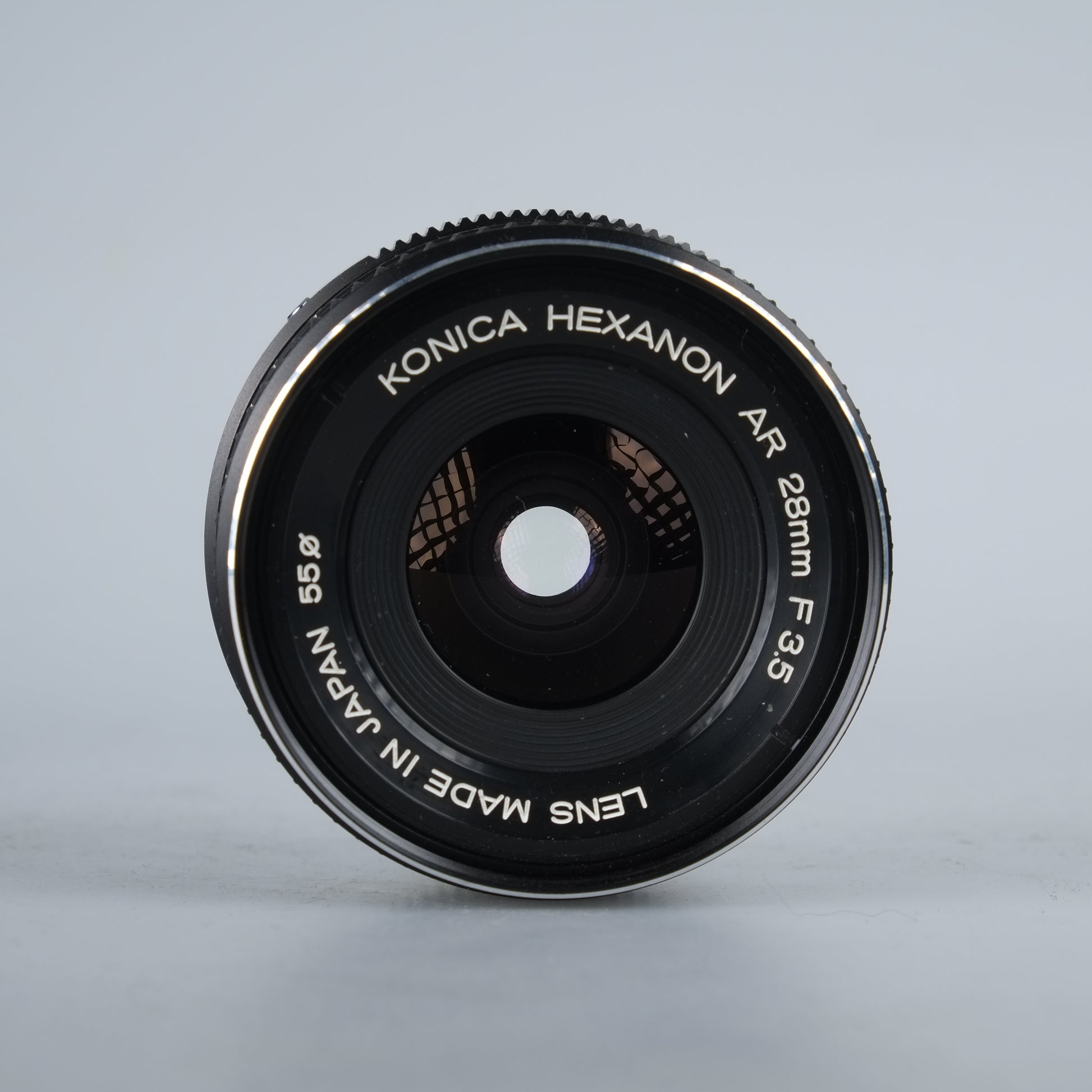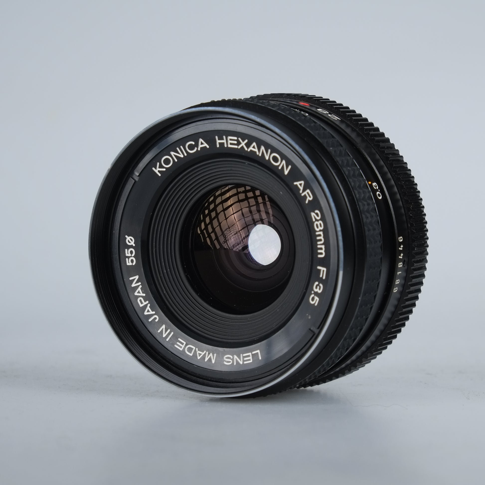 Weitwinkelobjektiv für Konica Spiegelreflexkameras, Blendenbereich 3.5-22 + AE.