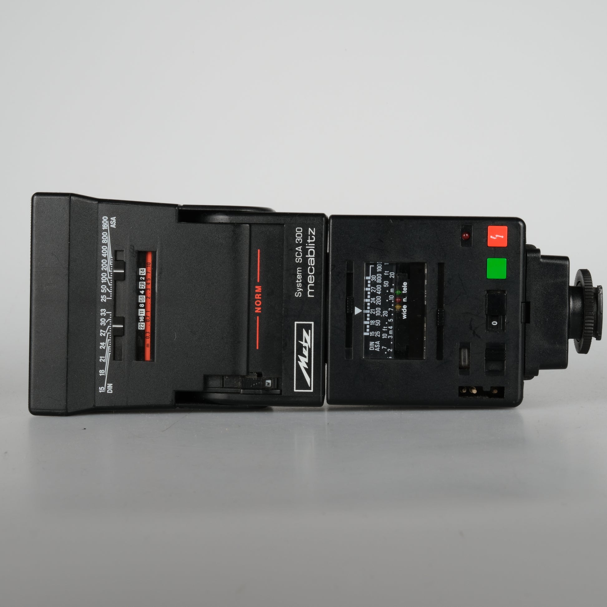 This flash unit is designed for use with cameras that support the SCA-300 adapter system. Various adapters (e.g., SCA-310 for Canon A-series, SCA-300 for universal hot shoes) allow the flash unit to be used with specific camera hot shoes.