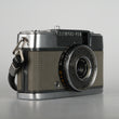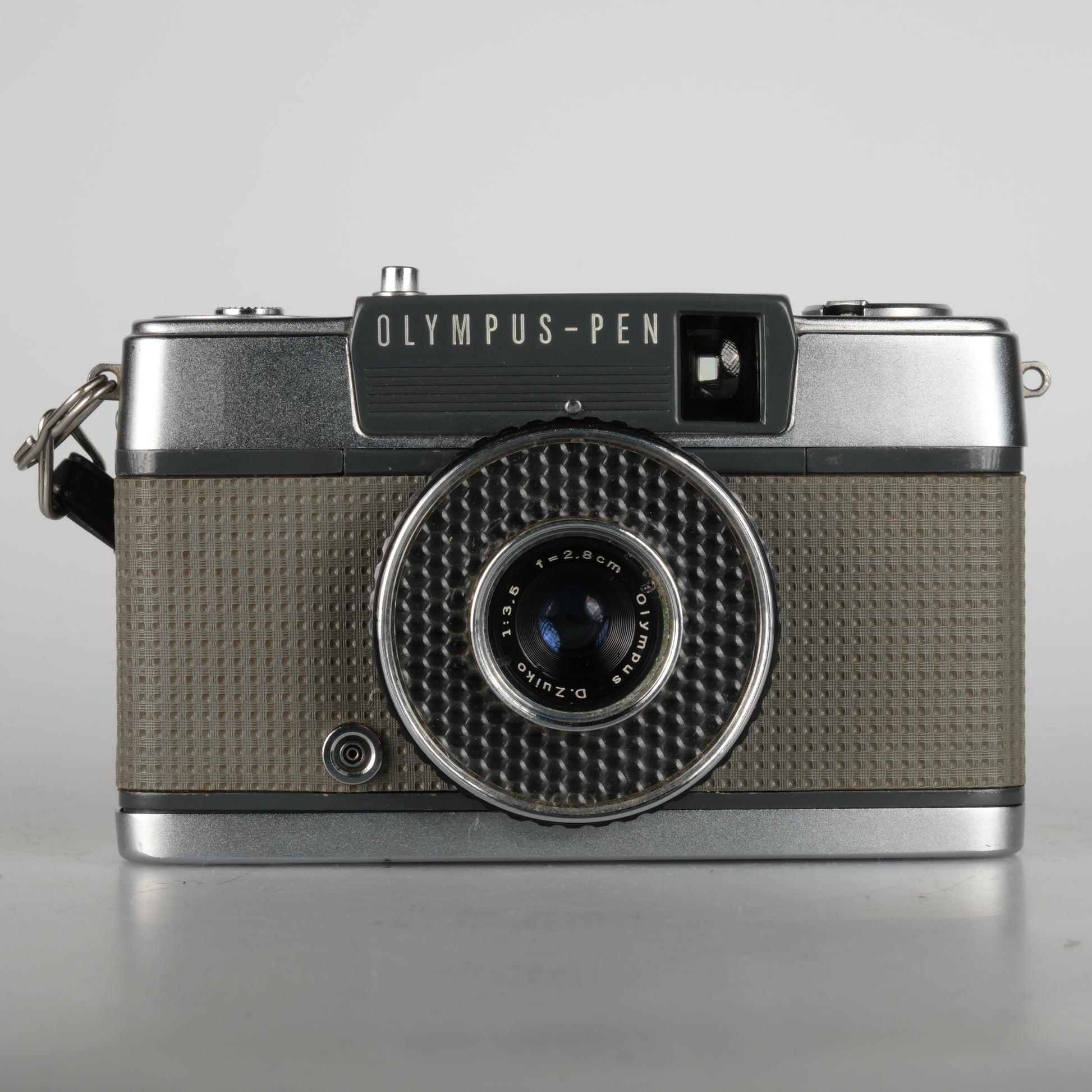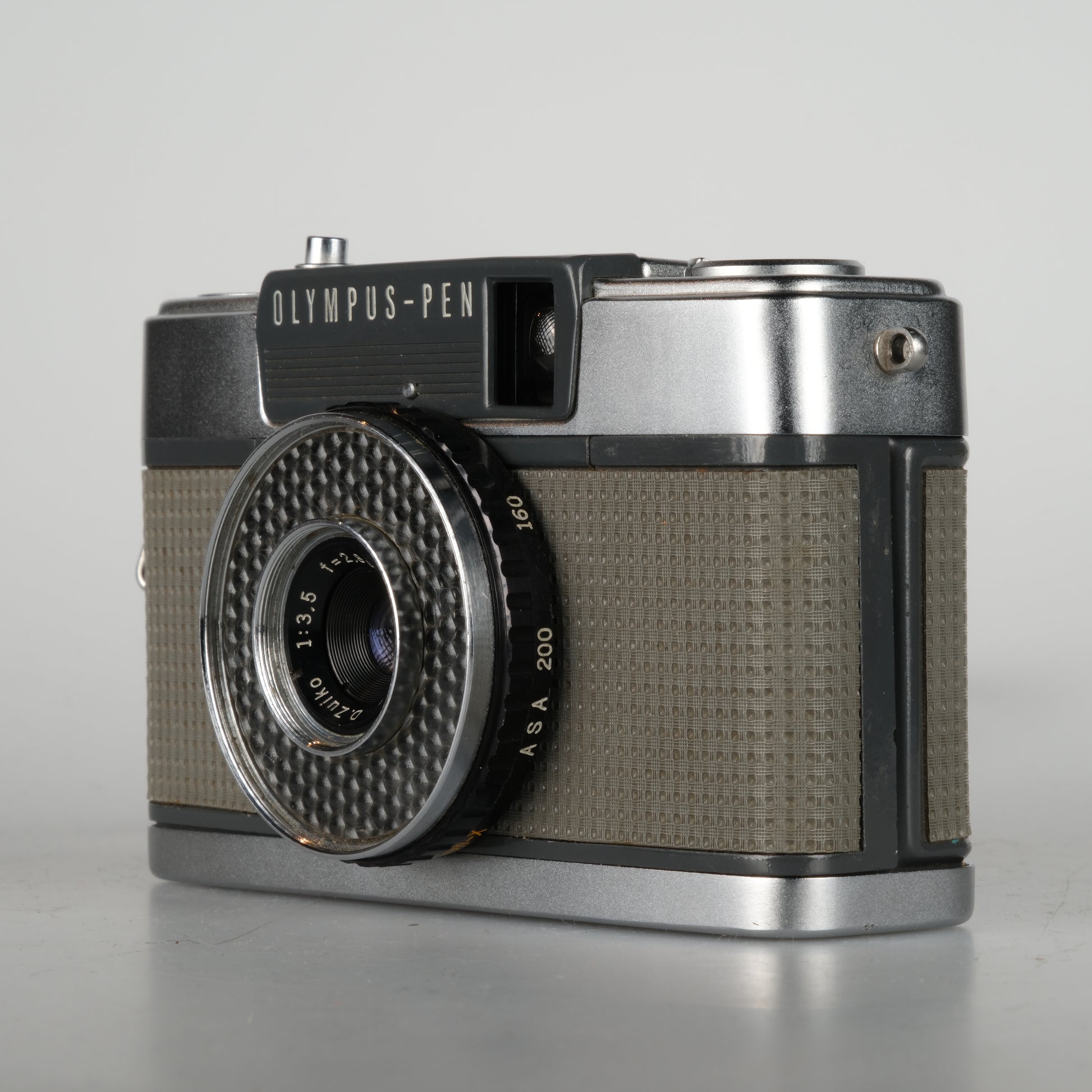 Olympus Pen-EE 35mm half-frame viewfinder camera with automatic exposure. Shutter speed approx. 1/40 sec. (fixed). ISO adjustable via the built-in light meter (depending on the film). Exposure metering: Selenium cell, works optimally with film sensitivities from ISO 100 to ISO 400. Fixed lens with manual focus.