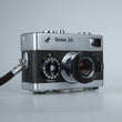 Compact viewfinder camera with a fast, fixed focal length lens for the time.