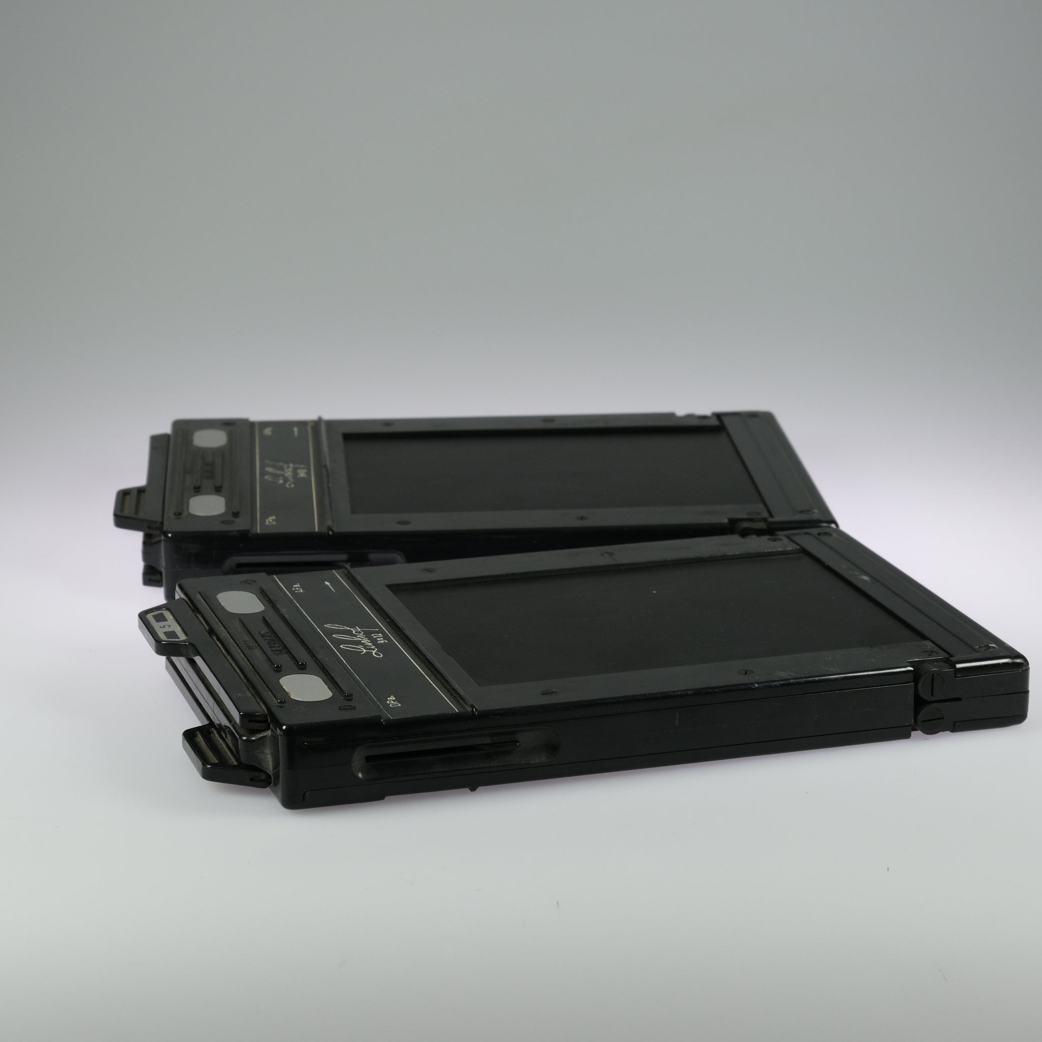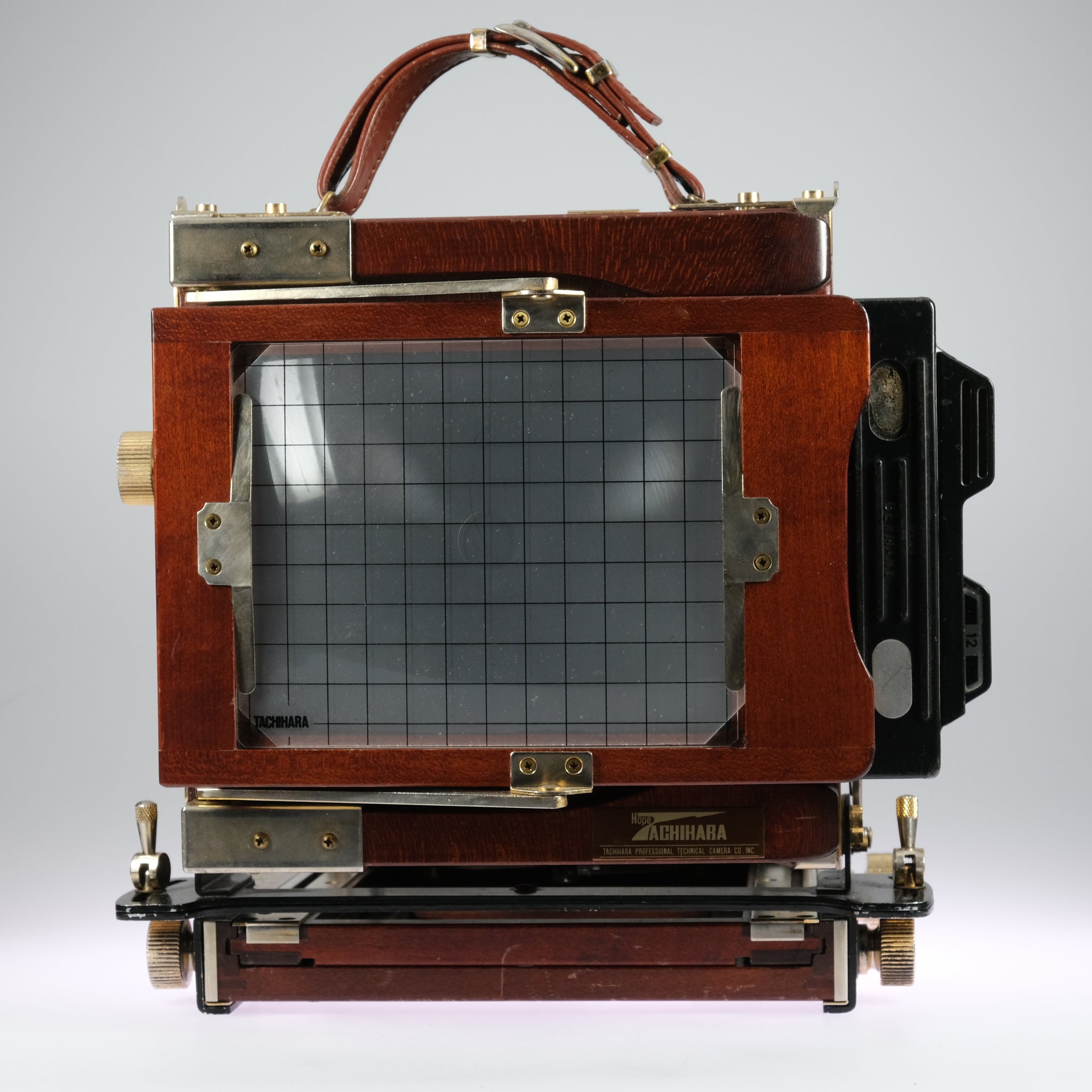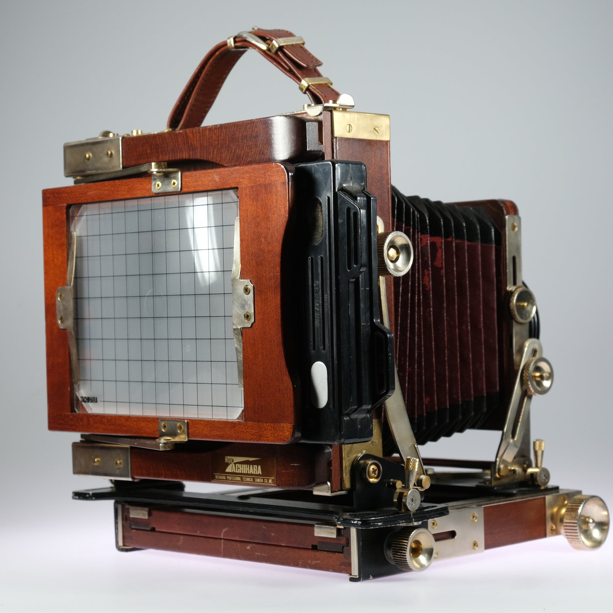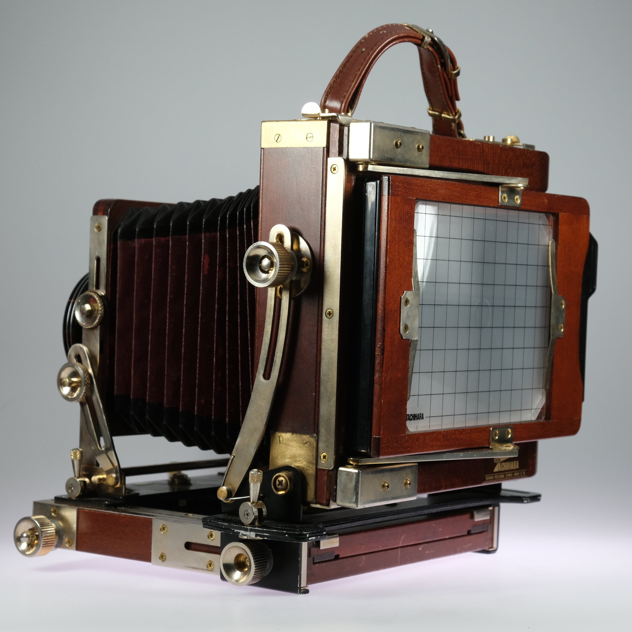 Large format 4x5 camera, with 2 9x12 magazines. Standards adjustable e.g. rise, fall, tilt etc.