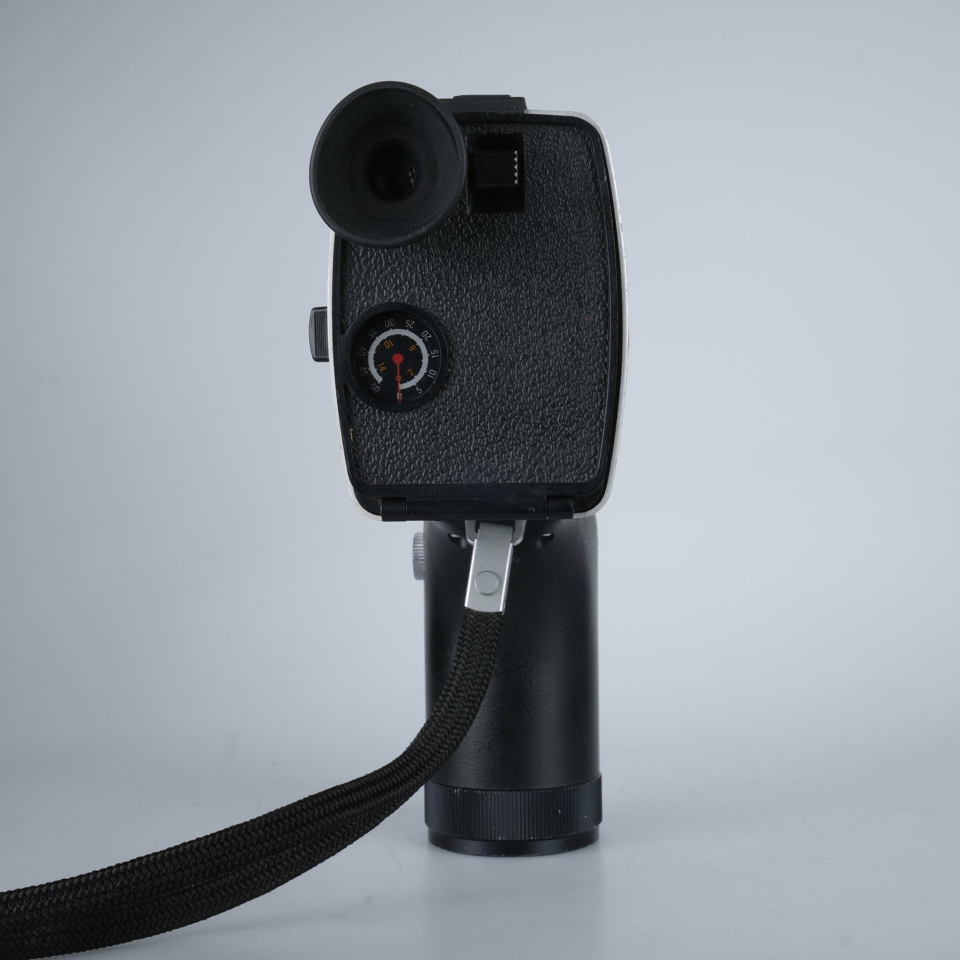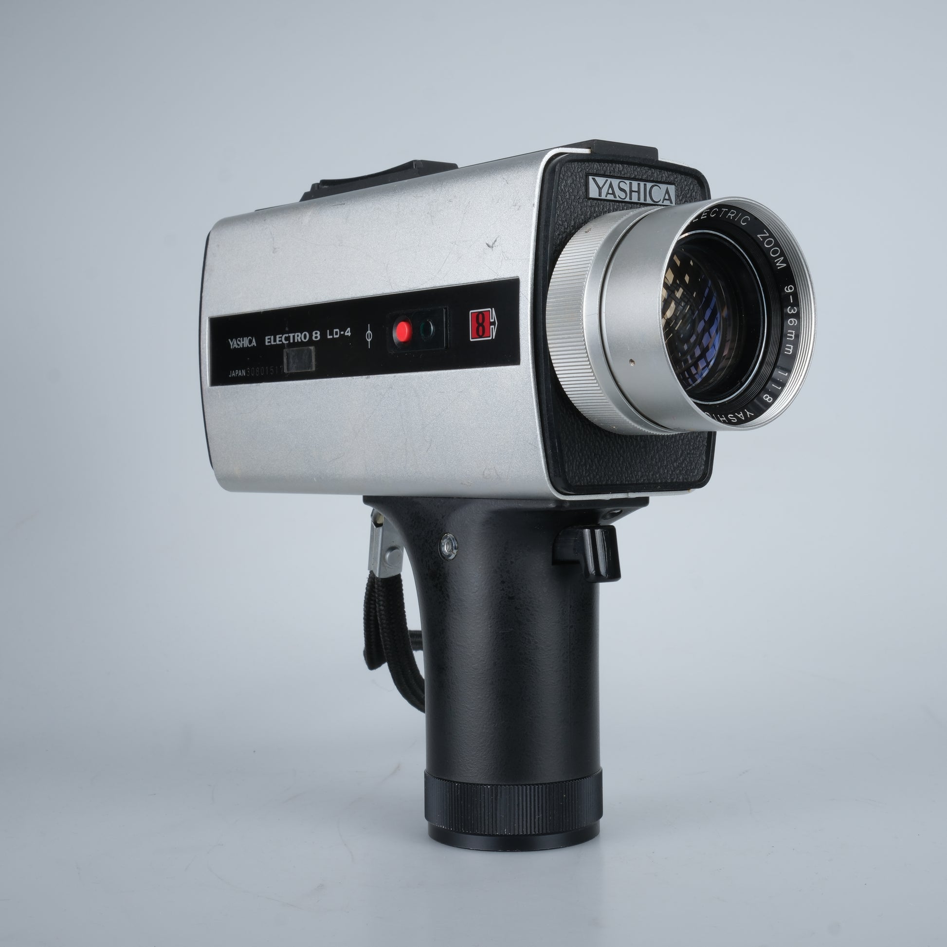 Yashica Super 8 Kamera mit 18 Bilder pro Sekund und Einzelbilder, Abblend und Überblend Funktionen. Kann 25/40, 100/160 und 250/400 ISO Filme erkennen.