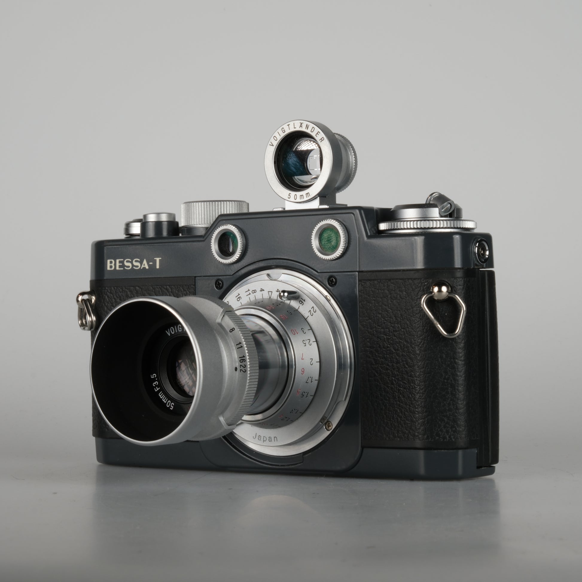 Bessa-T mechanische 35mm Messsucherkamera mit Leica M-Bajonett. Eingebauter Entfernungsmesser, jedoch kein integrierter Sucher – zur Bildkomposition werden externe Sucher benötigt. TTL-Belichtungsmessung mit LED-Anzeige. Verschlusszeiten: B – 1/2000 Sek., PC-Blitzsynchronisation bei 1/125 Sek. ISO-Bereich: 25 – 1600. Fest verbautes Objektiv mit manuellem Fokus.