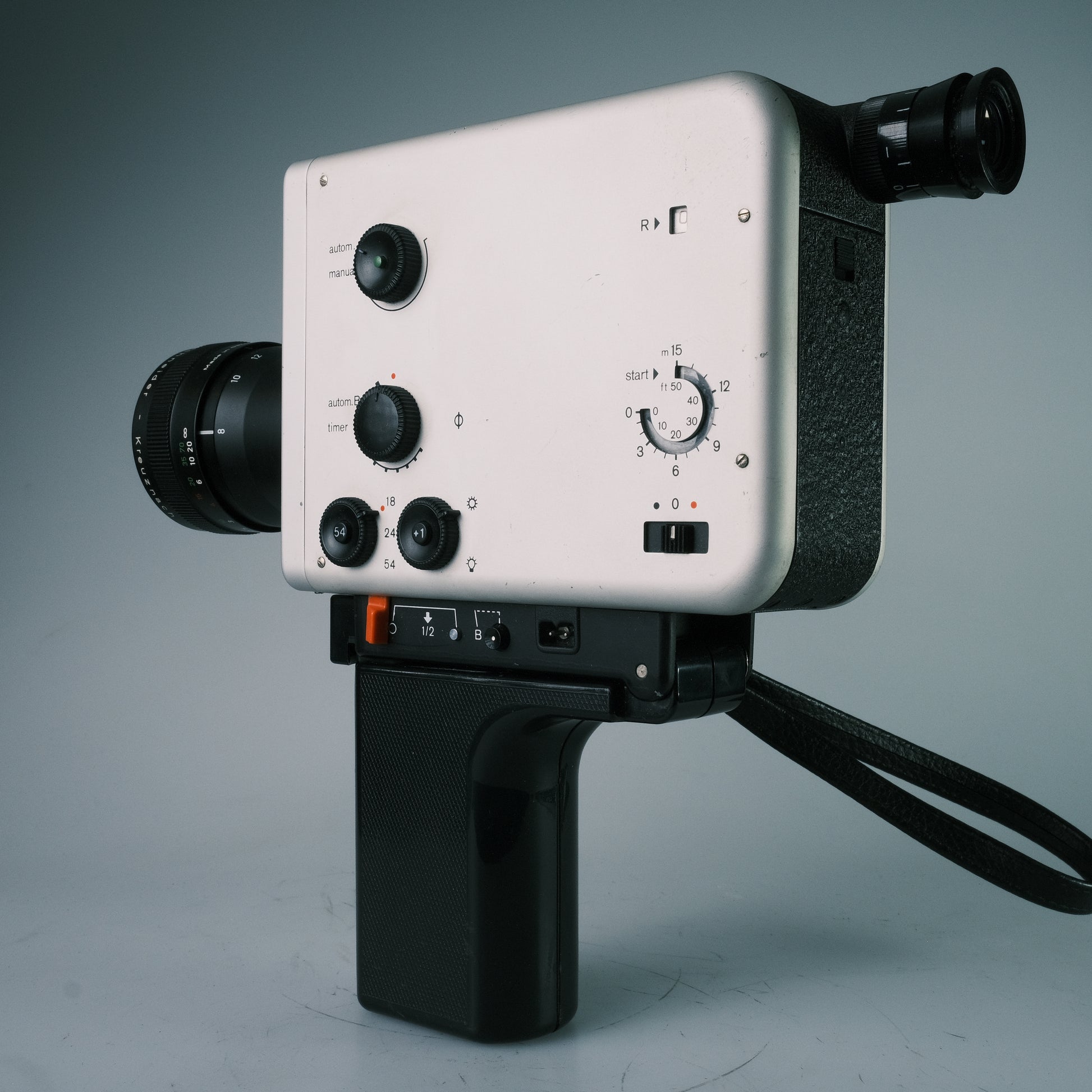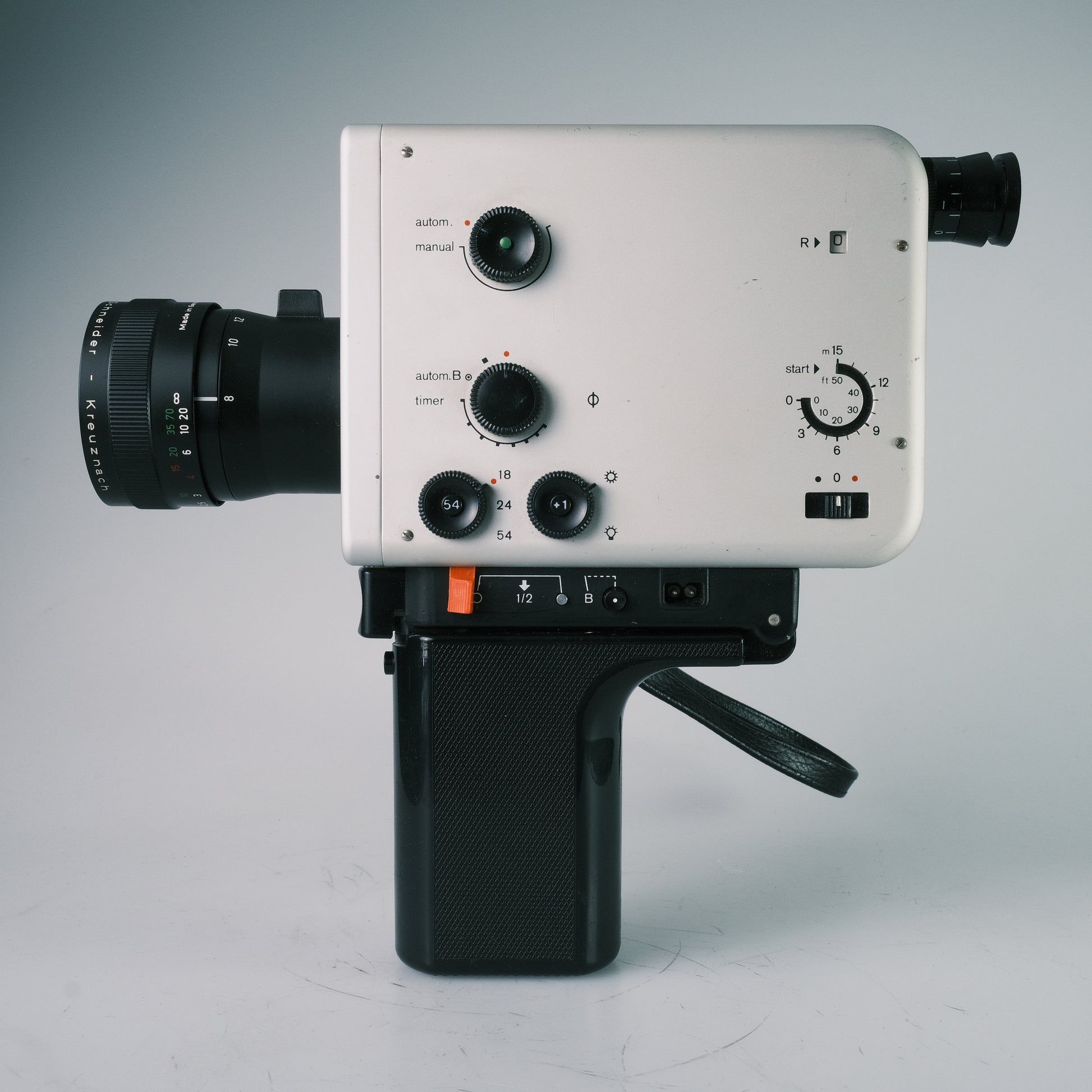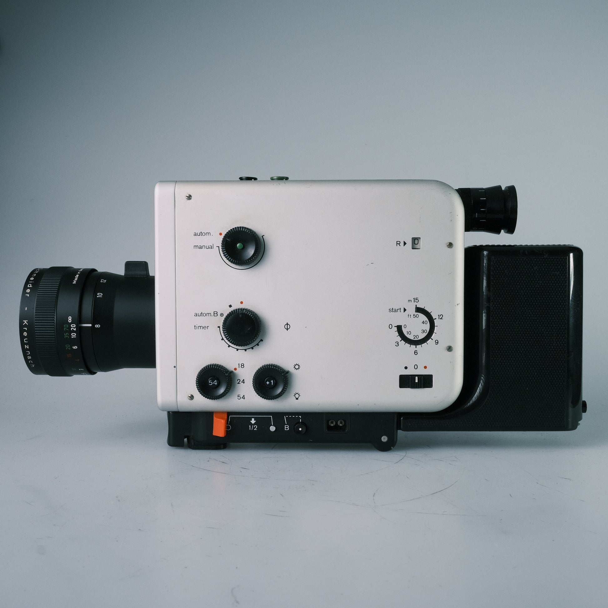 1, 18, 24, 54 B/sec, Timer, manuelle und automatische Belichtung, Überblendung, Auf- und Abblendung, Motorzoom, Klappgriff.