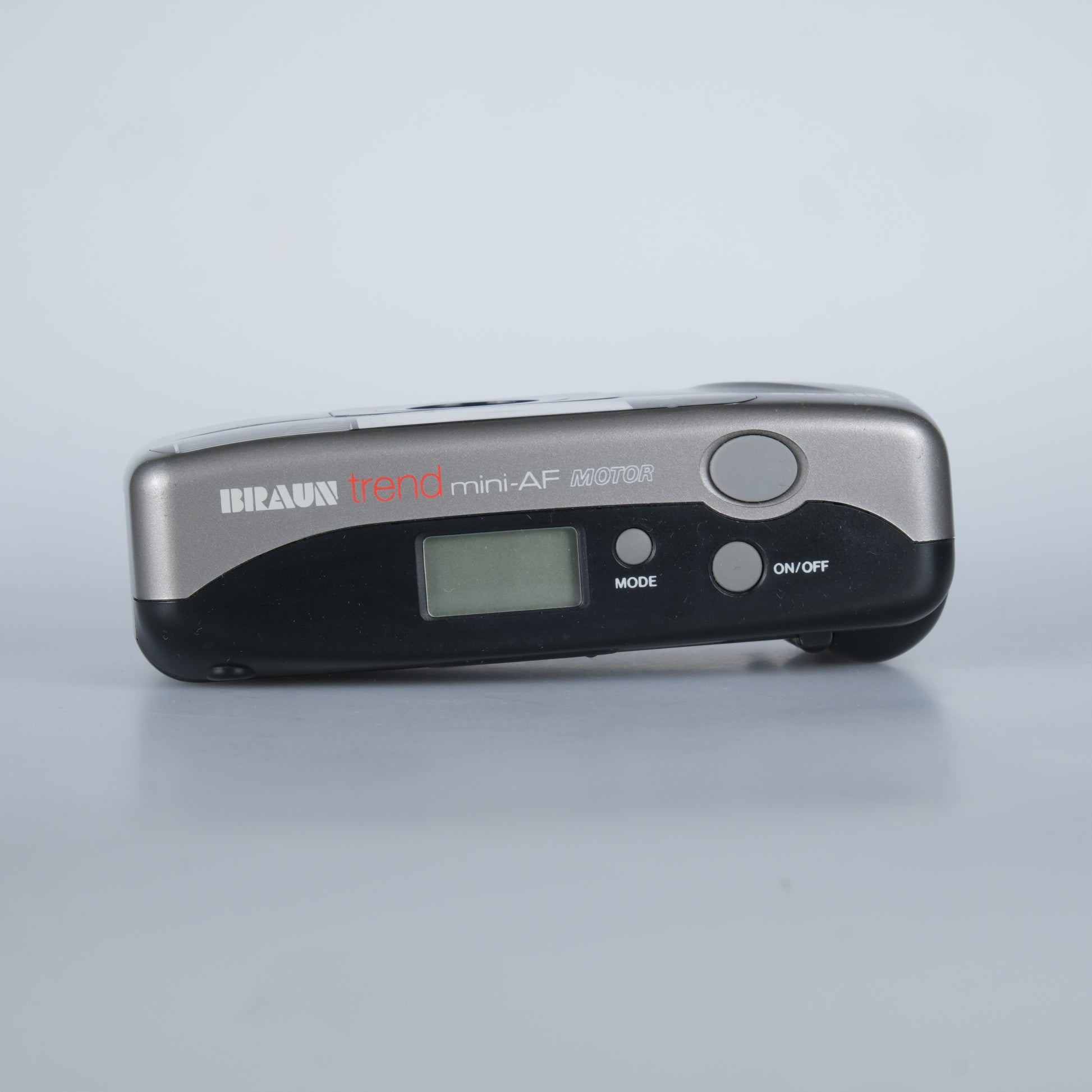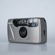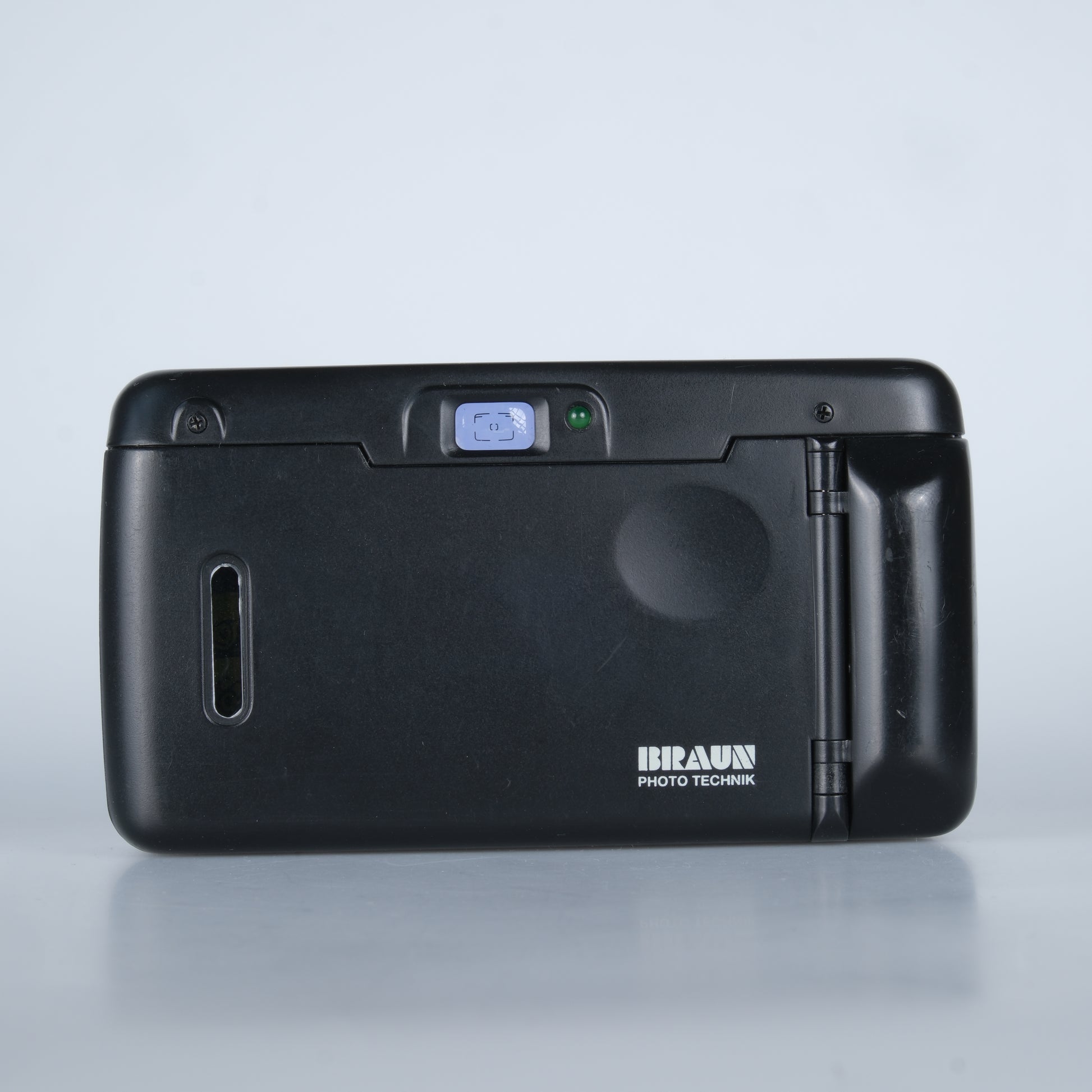 Vollautomatische Sucherkamera mit automatischem oder manuellem Blitz, motorisiertem Filmtransport, automatischer Filmerkennung durch DX-Codierung, Makro-Modus, Selbstauslöser.