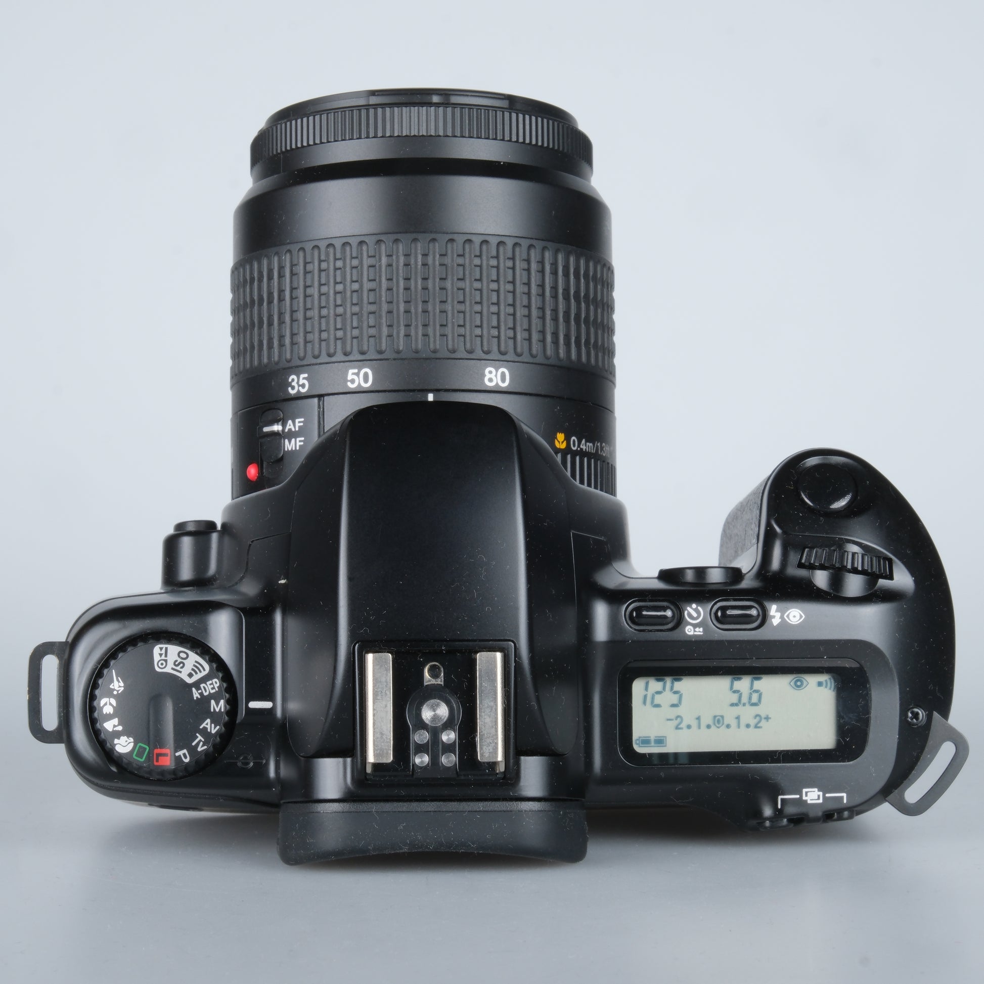 EF Objektiv Anschluss, Belichtungsmesser, DX-Codierung iso 6-6400, 30s - 1/2000s + B, 1/90s Blitzsynchronzeit, Eingebauter Blitz, Programmautomatik, Zeitautomatik, Blendenautomatik, manueller Modus, Selbstauslöser.