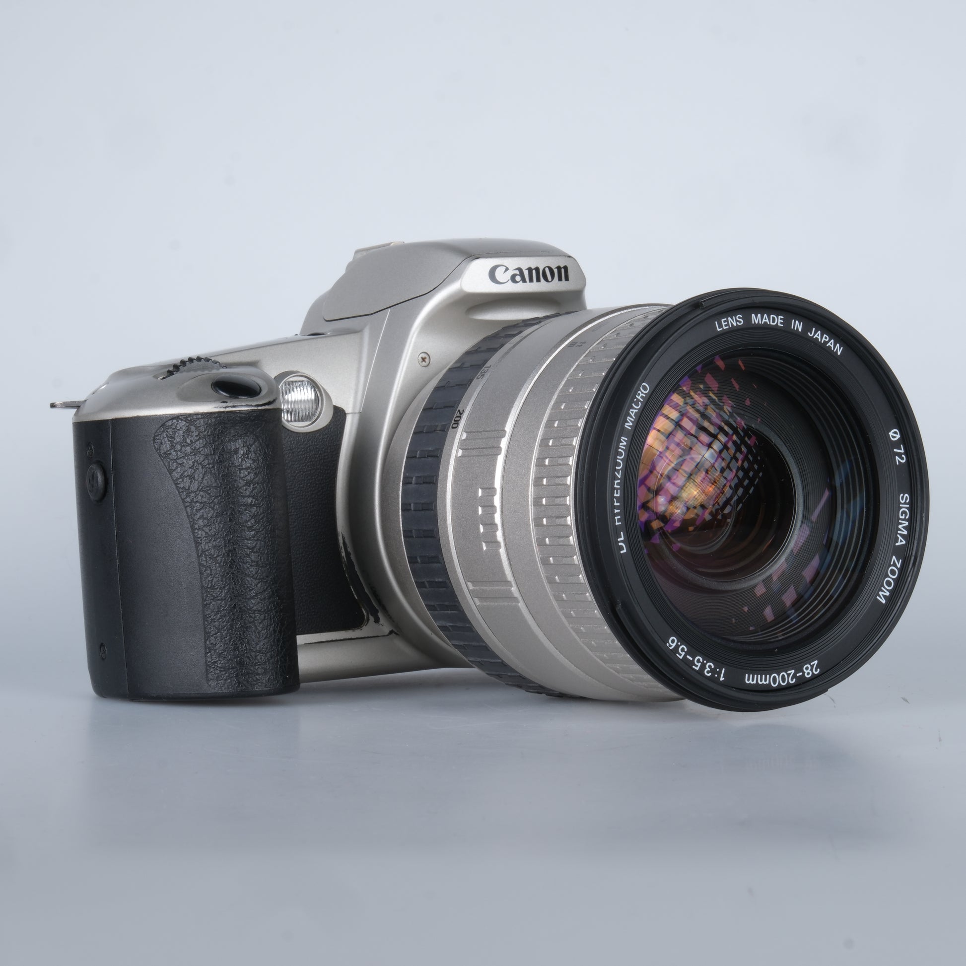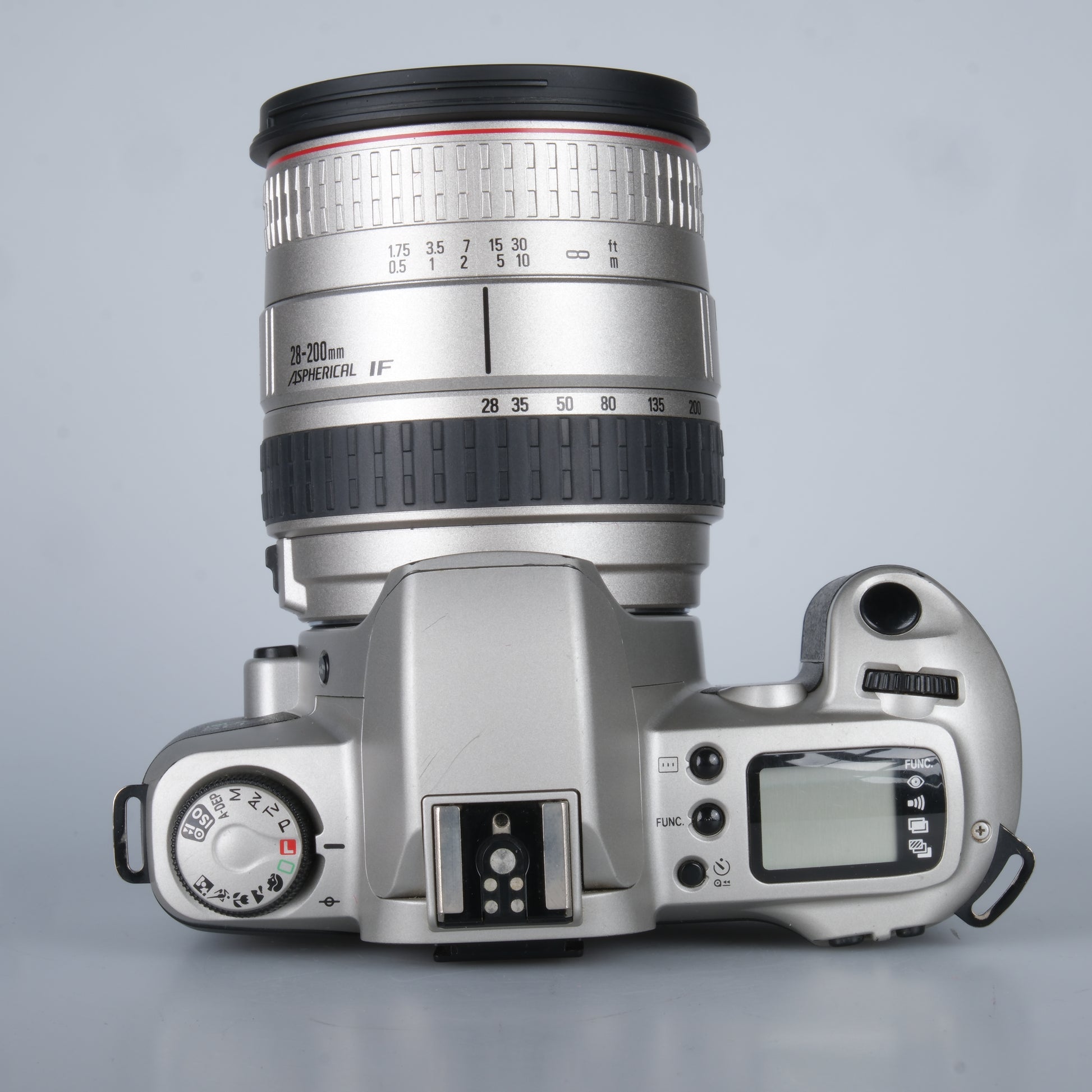 Canon Kleinbild Spiegelreflexkamera mit Autofokus durch 3-Feld-Kontrast-AF-Sensor, Vollautomatik, Zeitautomatik, Blendenautomatik, Motivprogramme, manueller Modus, 25 - 5000 ASA automatisch oder 6 - 6400 ASA manuell einstellbar, 35 Zonen Matrixmessung oder mittenbetont integrale Messung, Verwackelungswarnung, Verschlusszeiten 30 Sek. - 1/2000 Sek + B.
