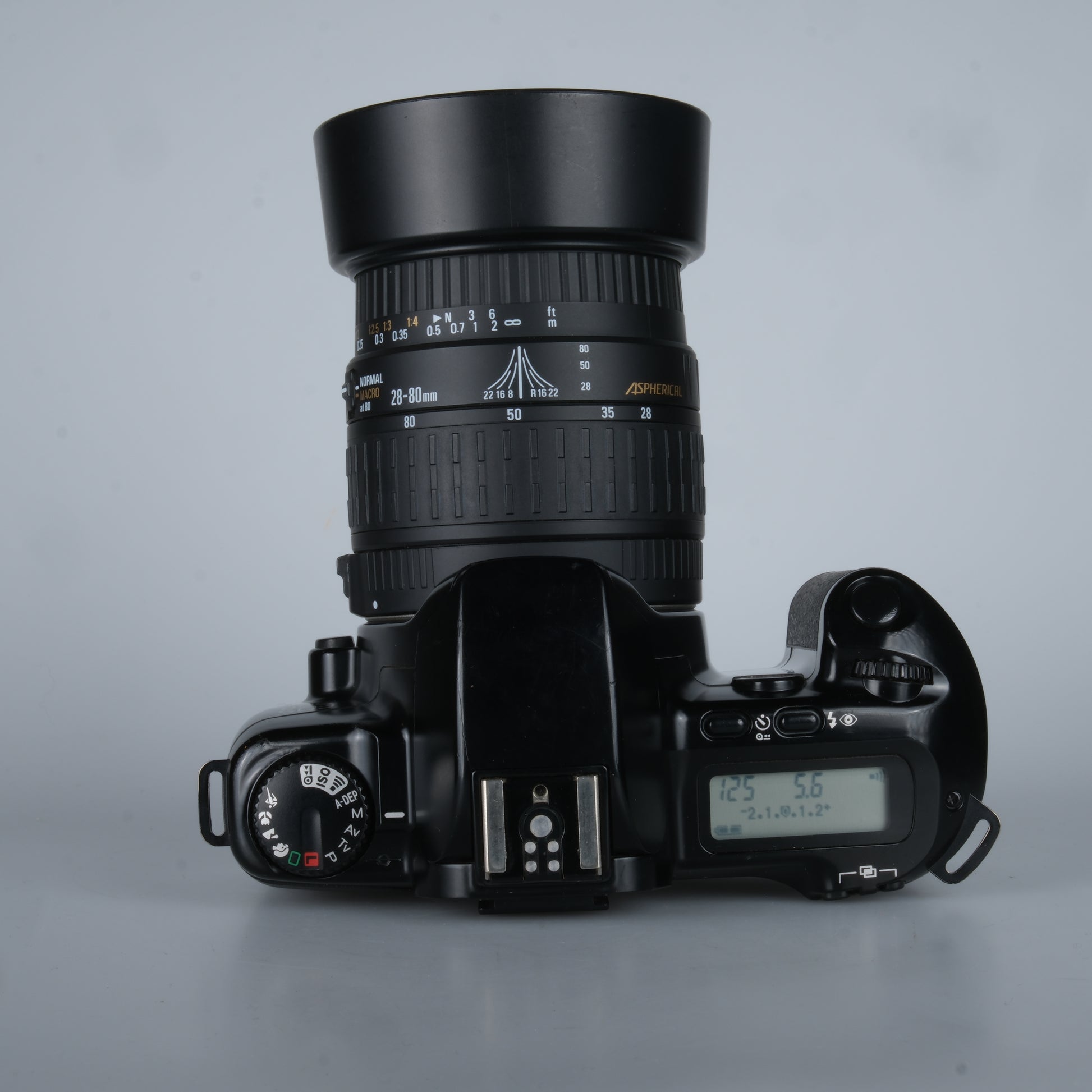 EF Objektiv Anschluss, Belichtungsmesser, DX-Codierung iso 6-6400, 30s - 1/2000s + B, 1/90s Blitzsynchronzeit, Eingebauter Blitz, Programmautomatik, Zeitautomatik, Blendenautomatik, manueller Modus, Selbstauslöser.