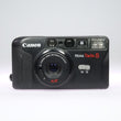 Kompakte Sucherkamera mit einem Objektiv mit 2 Brennweiten, Autofokus, integriertem Blitzgerät und automatischem Filmtransport.