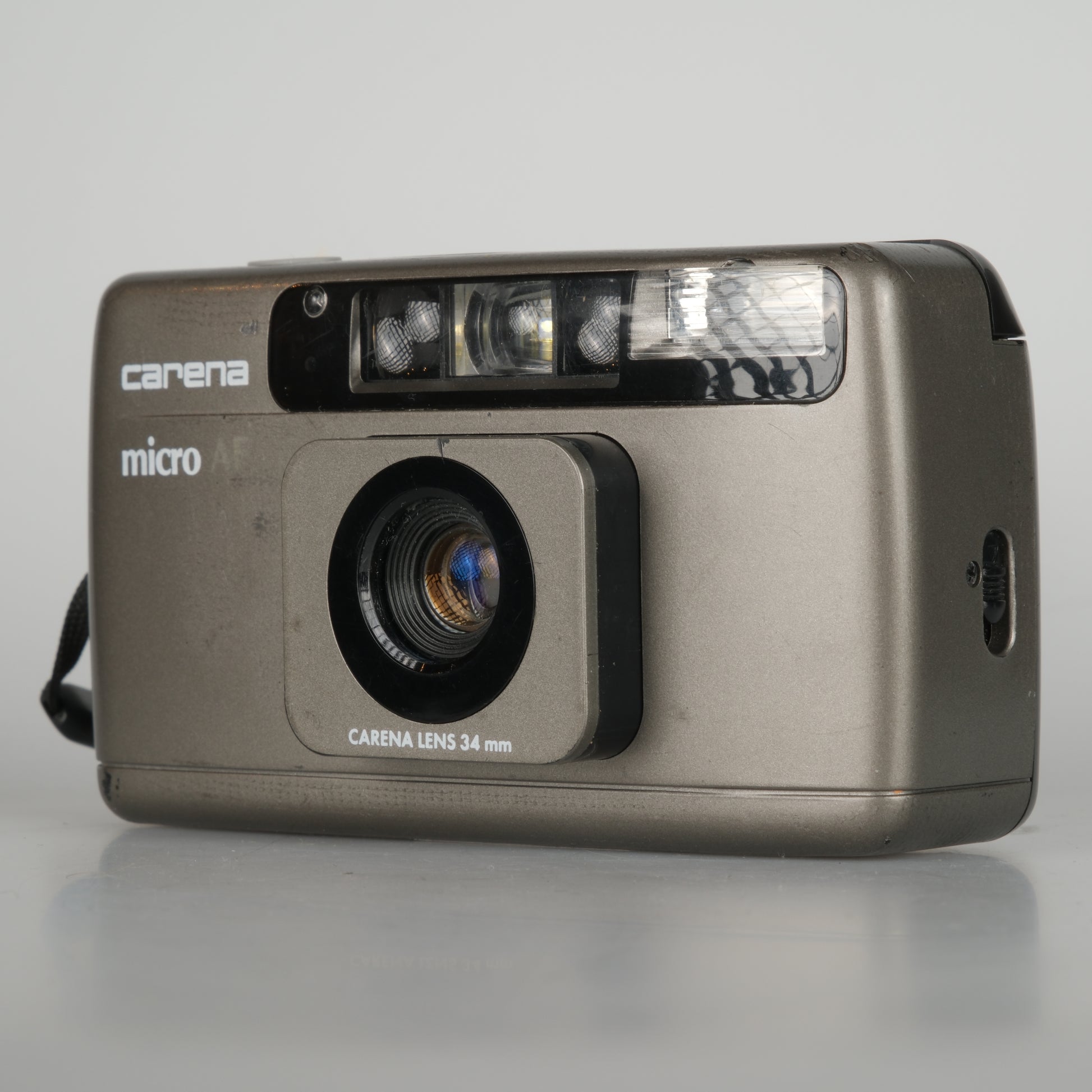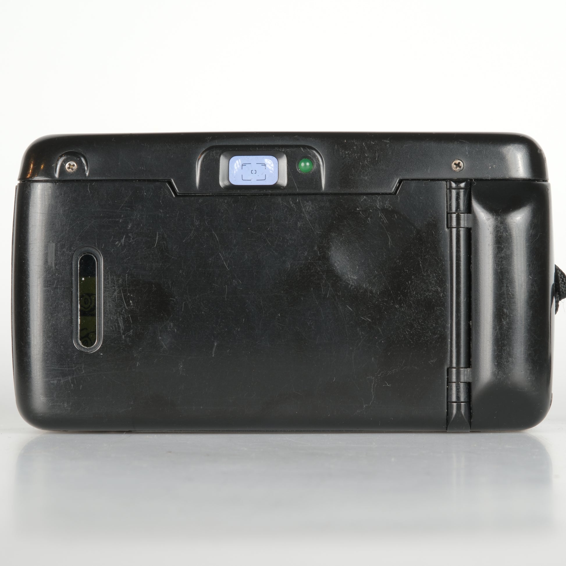 Vollautomatische 35 mm Kleinbild-Schnappschusskamera mit Autofokus und motorisiertem Filmtransport vor und zurück. Eingebauter Blitz mit automatischer Steuerung und Rote-Augen-Reduktion. Automatische Belichtung über DX-Codeerkennung (ISO 100–400). Fokusbereich von Nahaufnahmen ab ca. 0,4–0,6 m bis unendlich. Integrierter Selbstauslöser, LCD-Anzeige für Bildanzahl und Betriebszustand. Betrieben mit einer CR123A Lithium-Batterie. Kompakt, leicht und einfach zu bedienen.