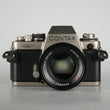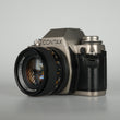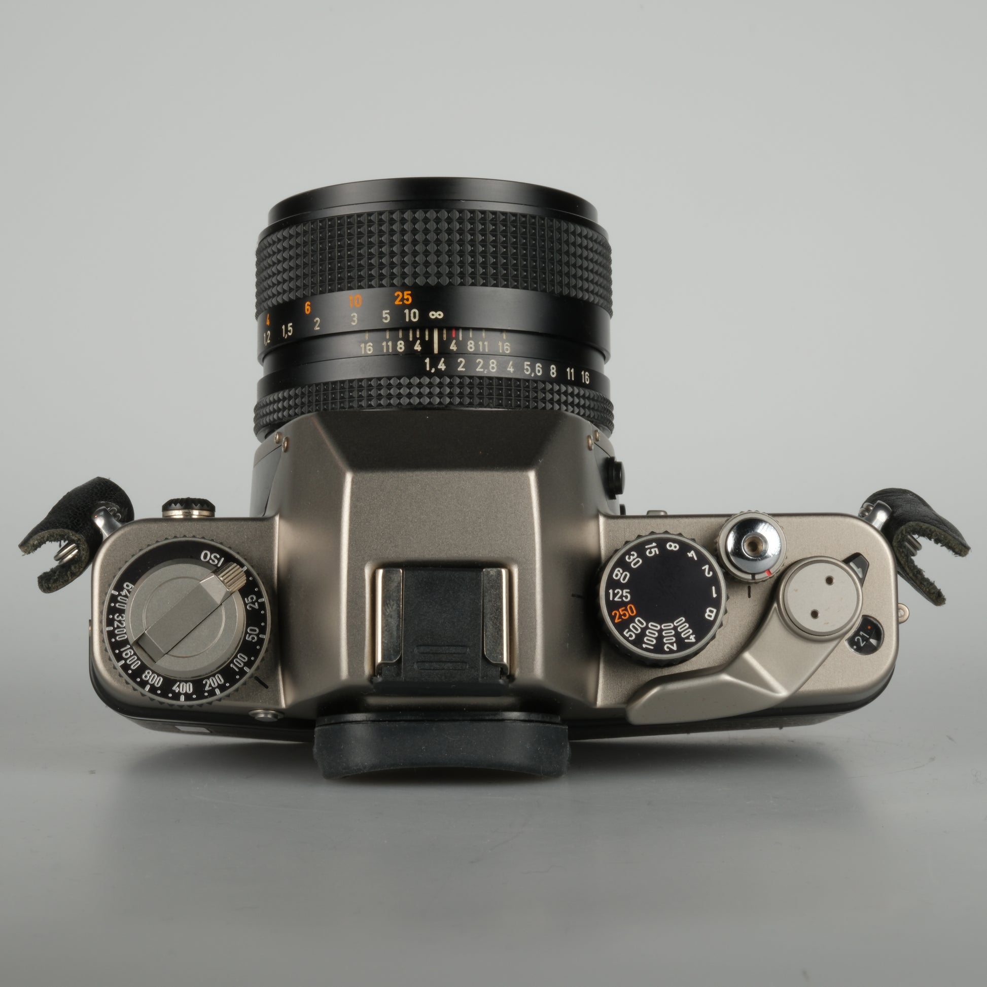 Mechanische Spiegelreflexkamera mit Verschlusszeiten 1 Sek. - 1/4000 Sek.+ B, X 1/250 Sek., mechanischer Selbstauslöser 10 Sek Vorlauf, manuelle Belichtung mit internem Belichtungsmesser 12 - 6400 ISO.