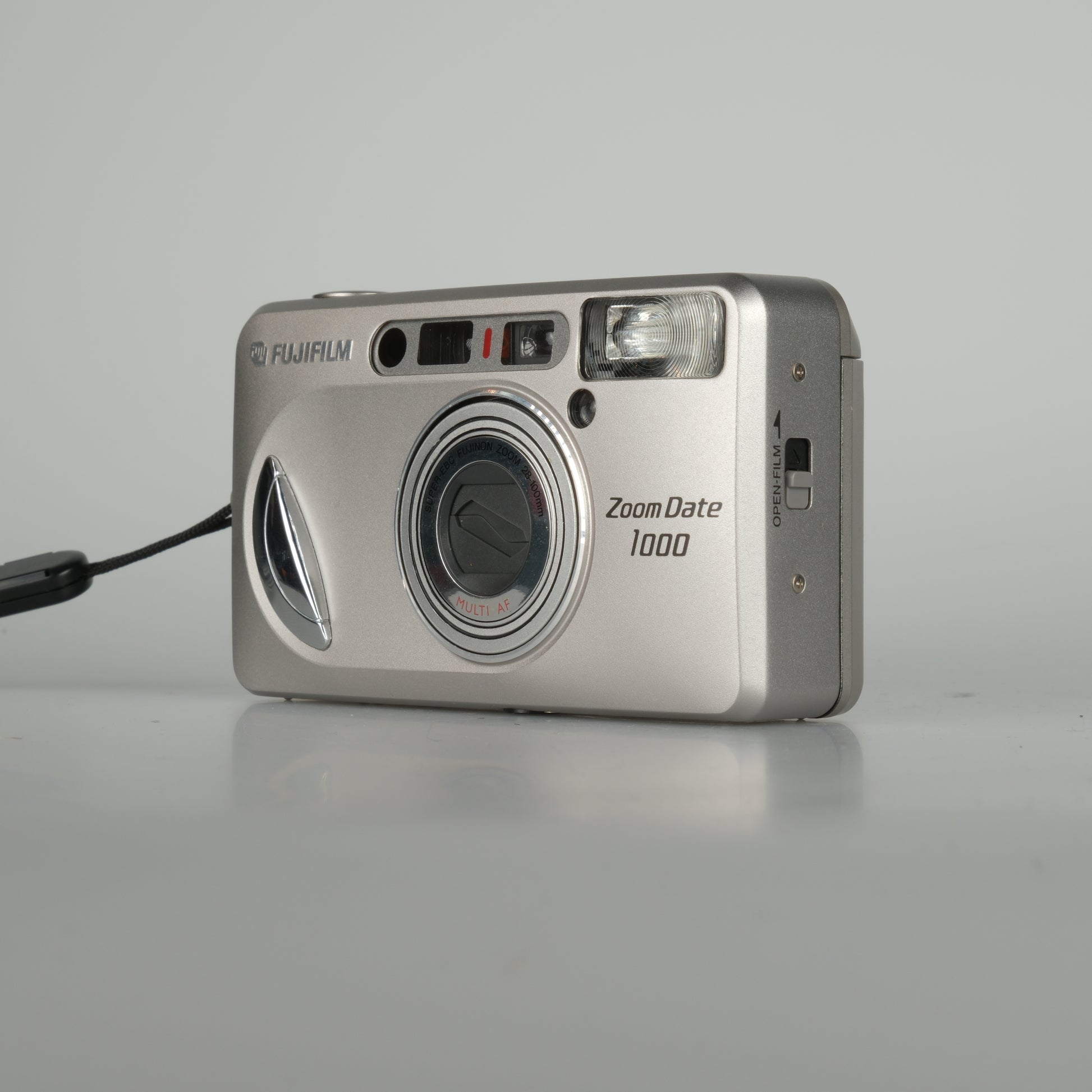 Vollautomatische 35-mm-Film-Kompaktkamera mit integriertem Blitz, Autofokus und motorisiertem Filmtransport. Zoom-Objektiv für flexible Bildgestaltung von Weitwinkel bis Tele. Datum-Einbelichtungsfunktion und Selbstauslöser inklusive. Betrieben mit einer CR2-Batterie.