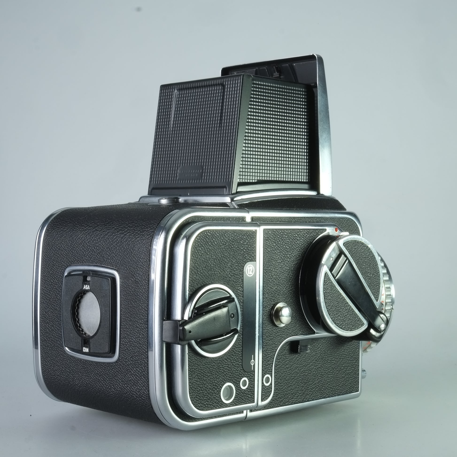 Mechanische 6x6 Spiegelreflexkamera, Wechselobjektiv, Lichtschacht Sucher (austauschbar) mit extra hellen Mattscheibe, Wechselmagazin.