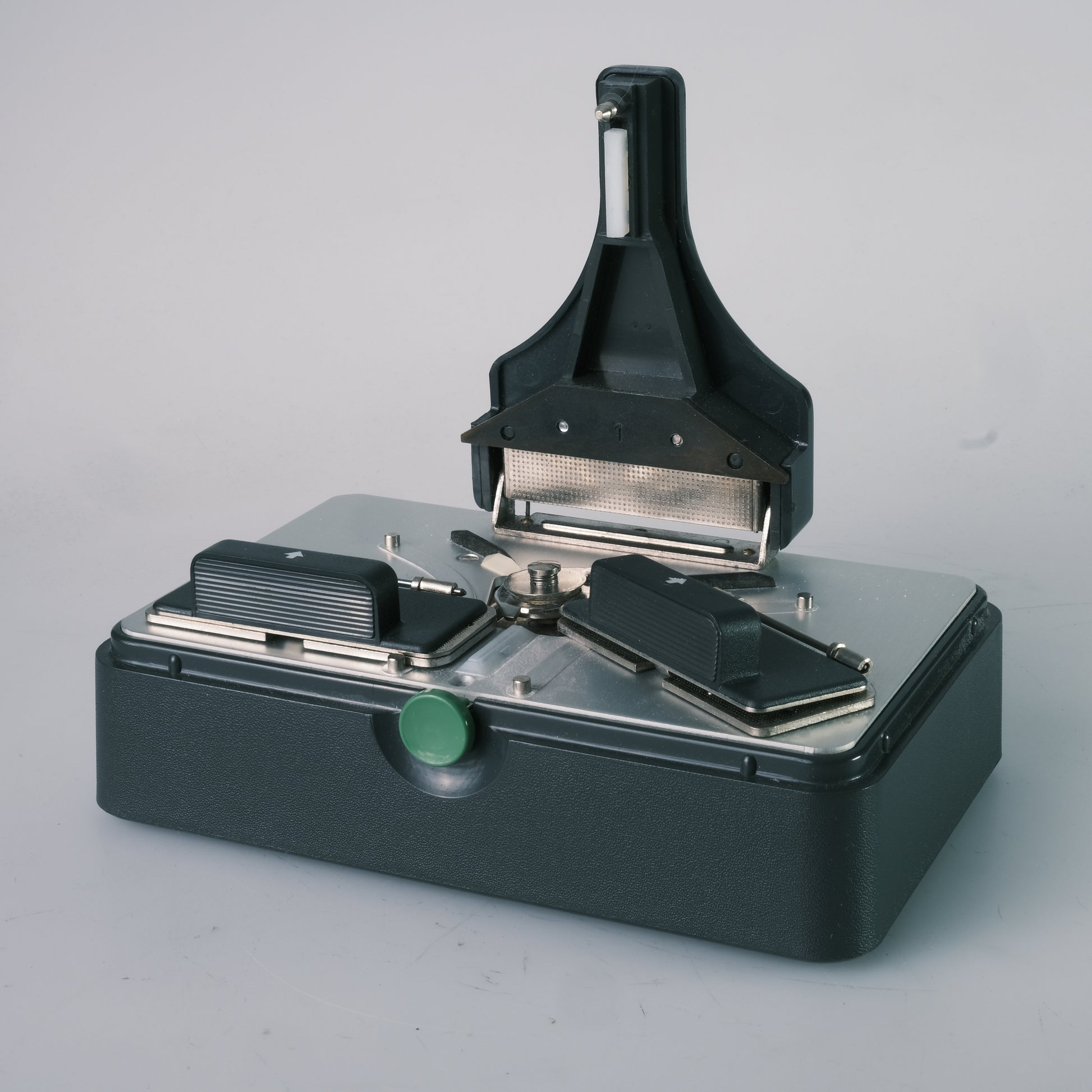 Nassklebepresse, Super 8, Keilschliff, motorisch, System Hähnel, Batteriebetrieb