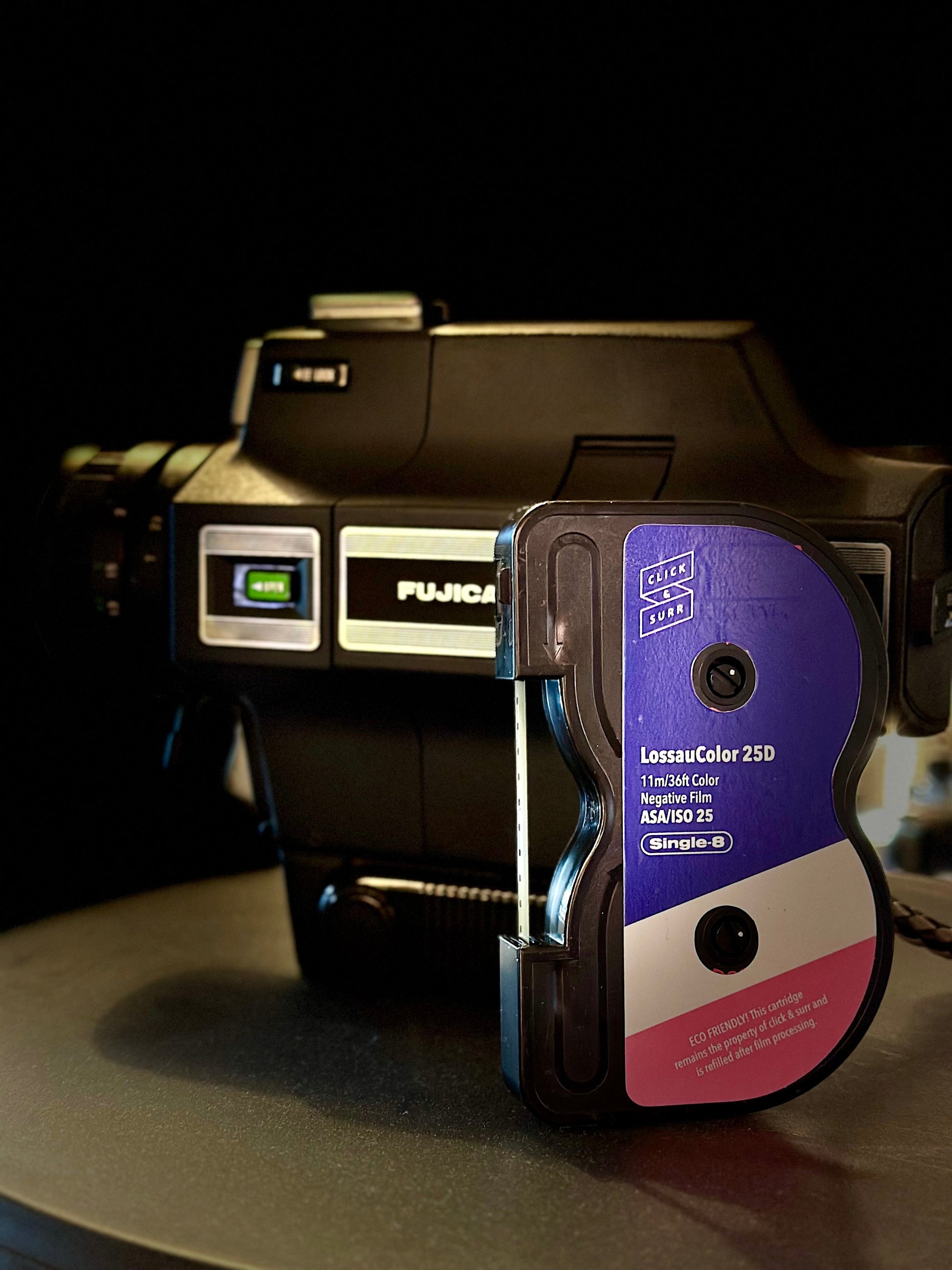 Weltweit einziger Color-Negativfilm für Tageslichtaufnahmen mit ISO 25 in der Single-8-Kassette. Feinkörnig und farbintensiv. Wegen des etwas dickeren Azetatträgers können nur 11m/36ft pro Kassette abgefüllt werden. Laufzeit: 2min. 30 sec. bei 18B/sec.