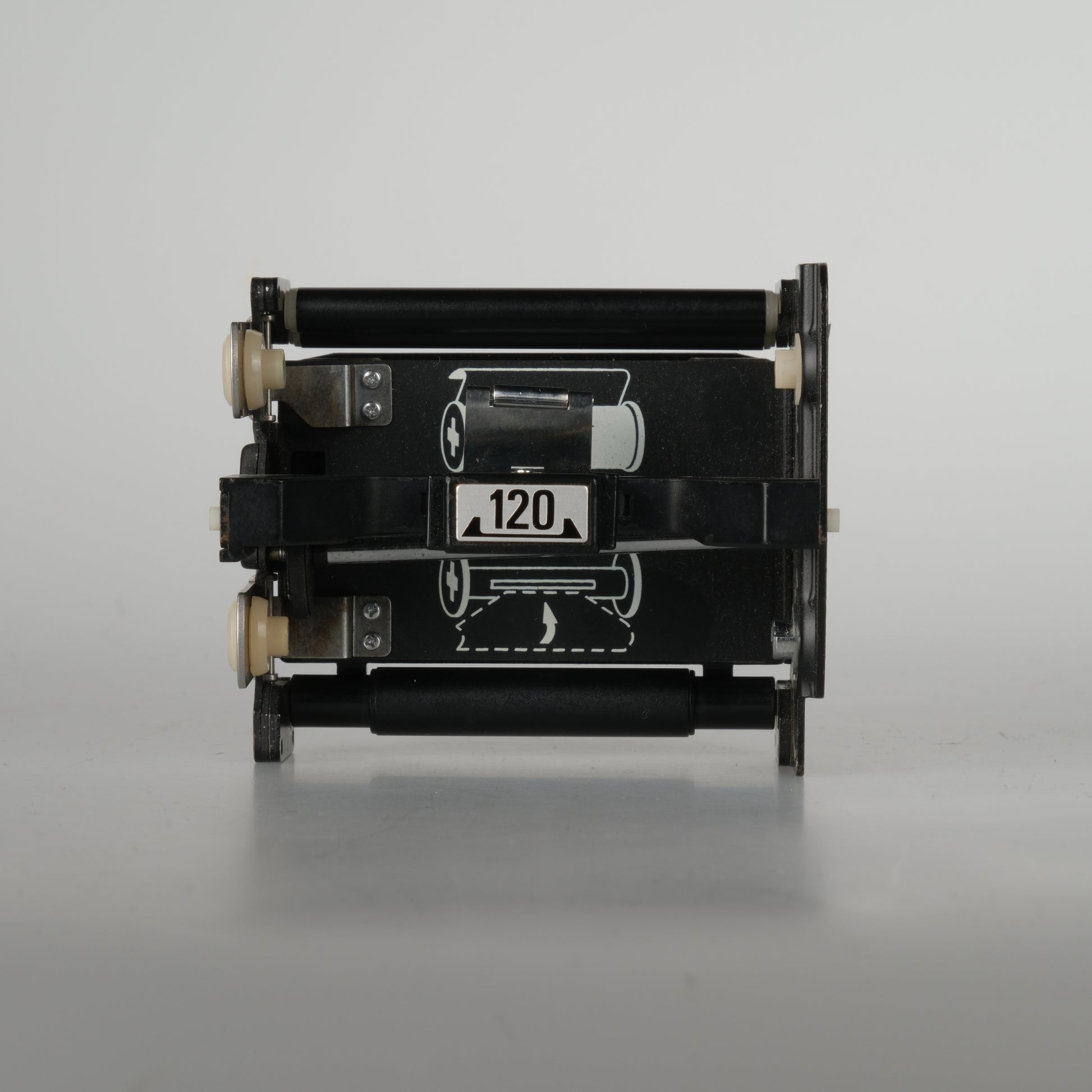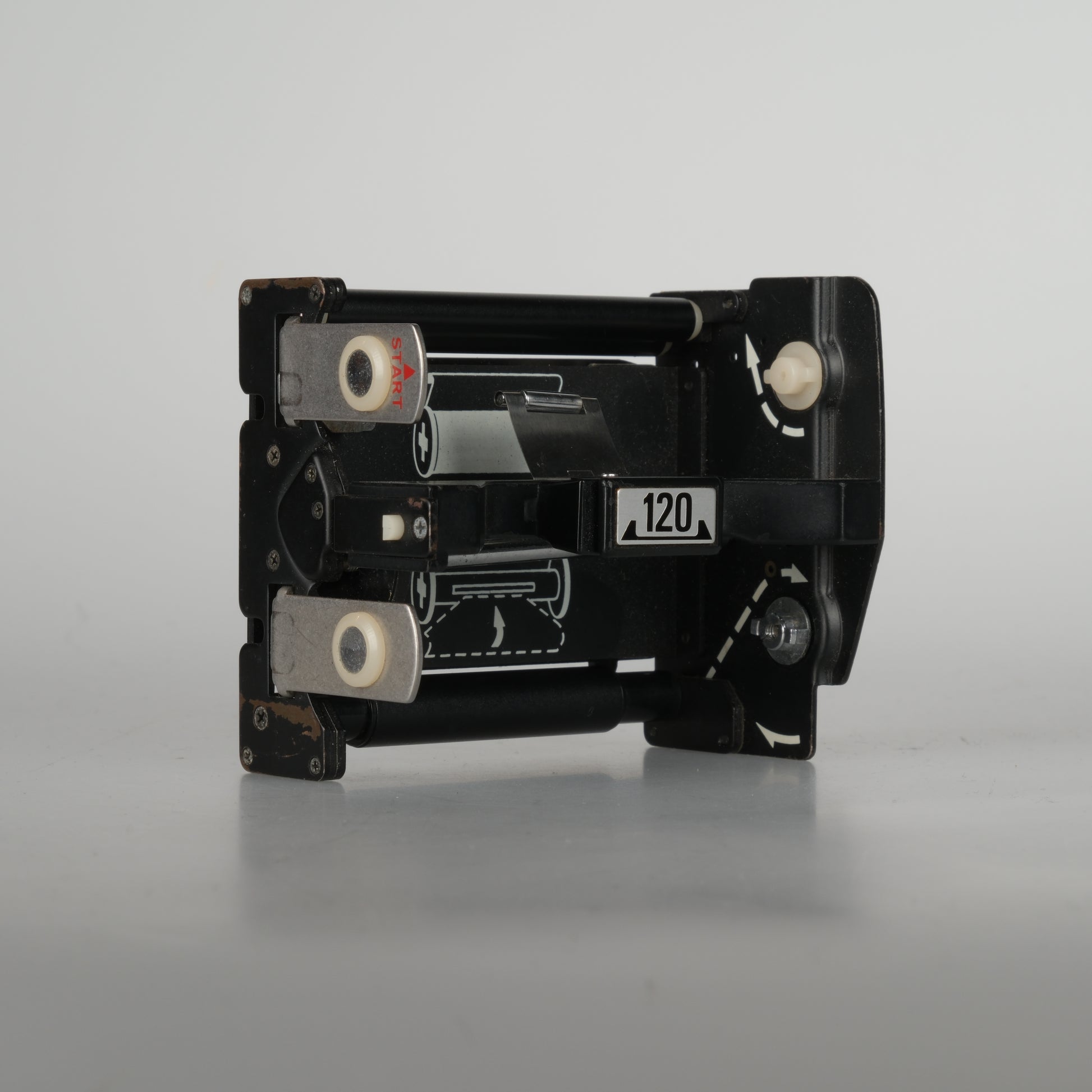 Der Mamiya 120 Filmträger ist ein austauschbares Magazin für 120-Rollfilm, das präzisen Filmtransport, exakte Planlage und kompatiblen Einsatz mit Mamiya Mittelformatkameras gewährleistet.