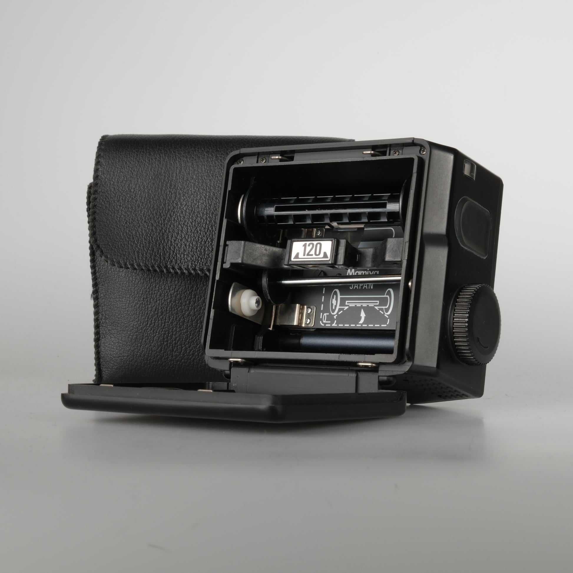120 Rollfilm Rückteil für Mamiya 645 Super mit Rollfilmeinsatz und Leerspule.