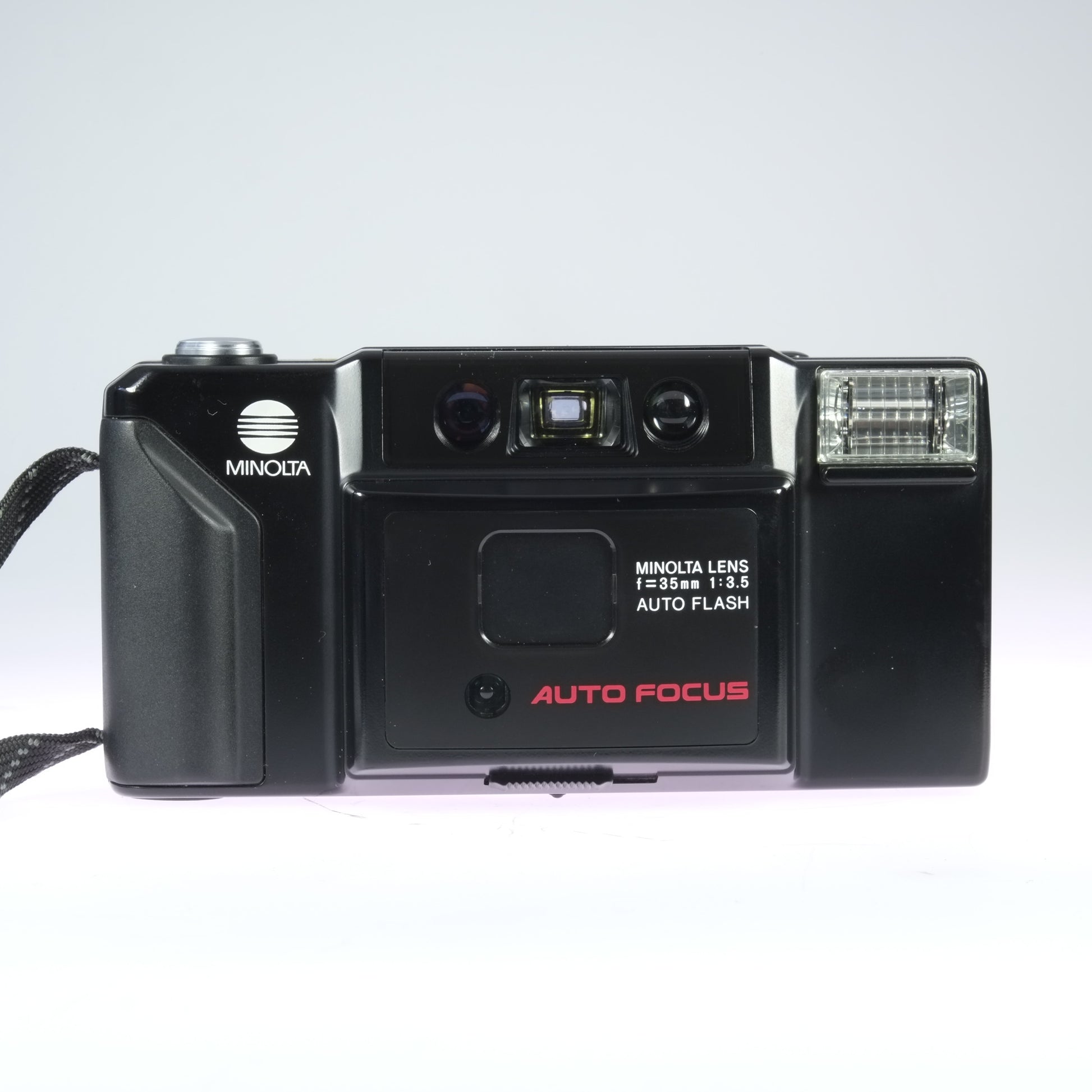 Kompakte Point-and-Shoot mit Blitz, automatischem Filmtransport und automatischer Belichtung. DX-Filmerkennung. Lichtstarkes Objektiv.
