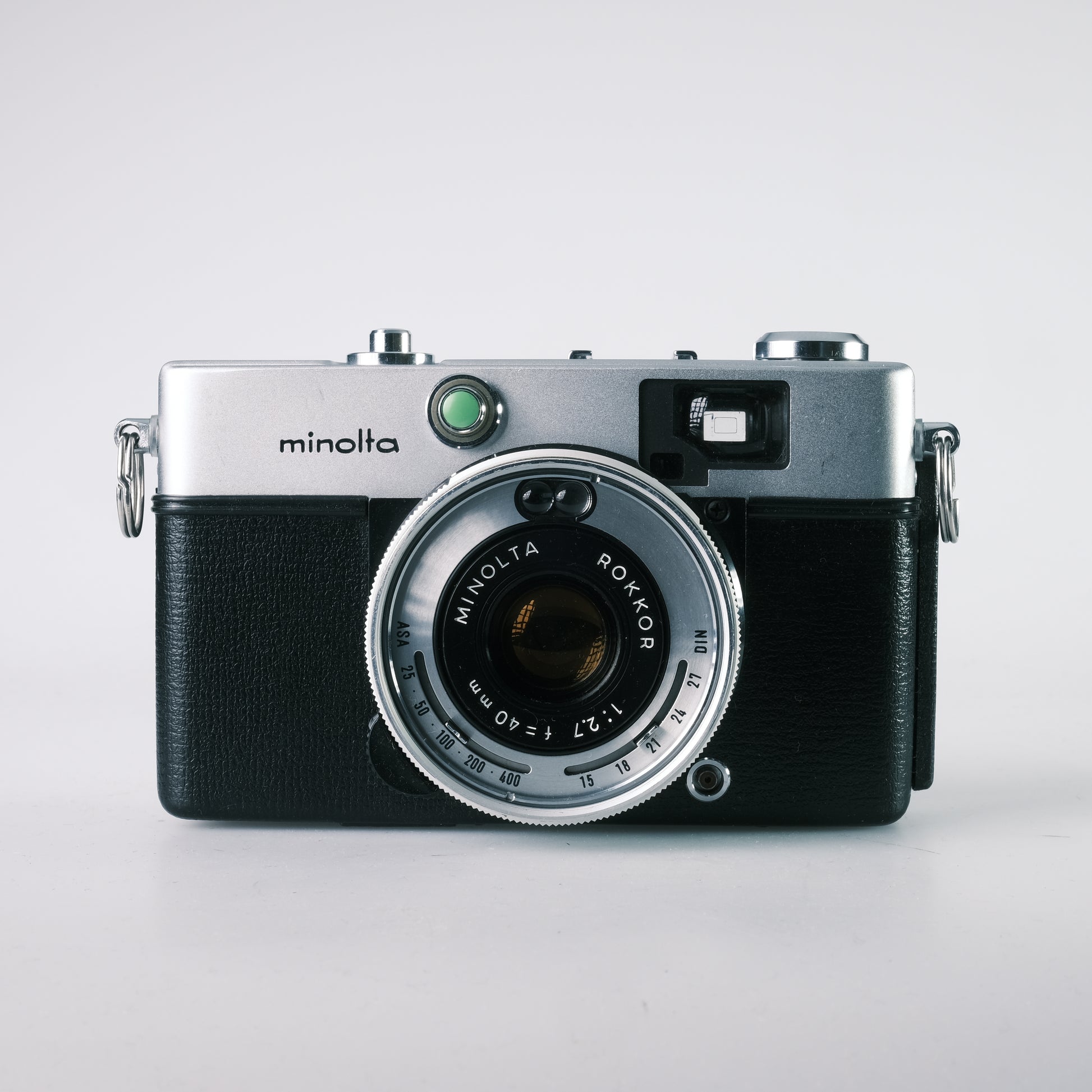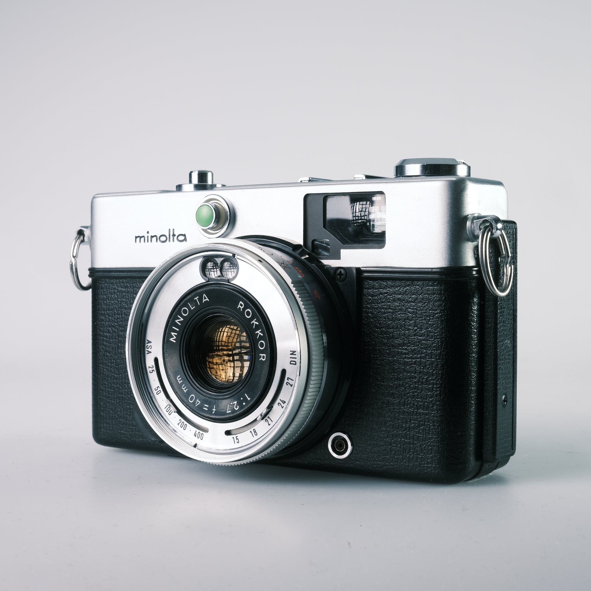 Minolta Sucherkamera mit Automatischer Belichtung für hellere und dunklere Situationen, Zonen Fokus und mechanischer Filmtransport.