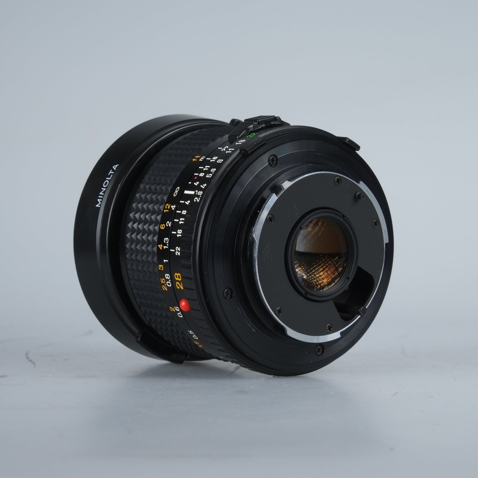 Weitwinkelobjektiv für Minolta, Blendenbereich 2.8-22, mit Blendenautomatik.