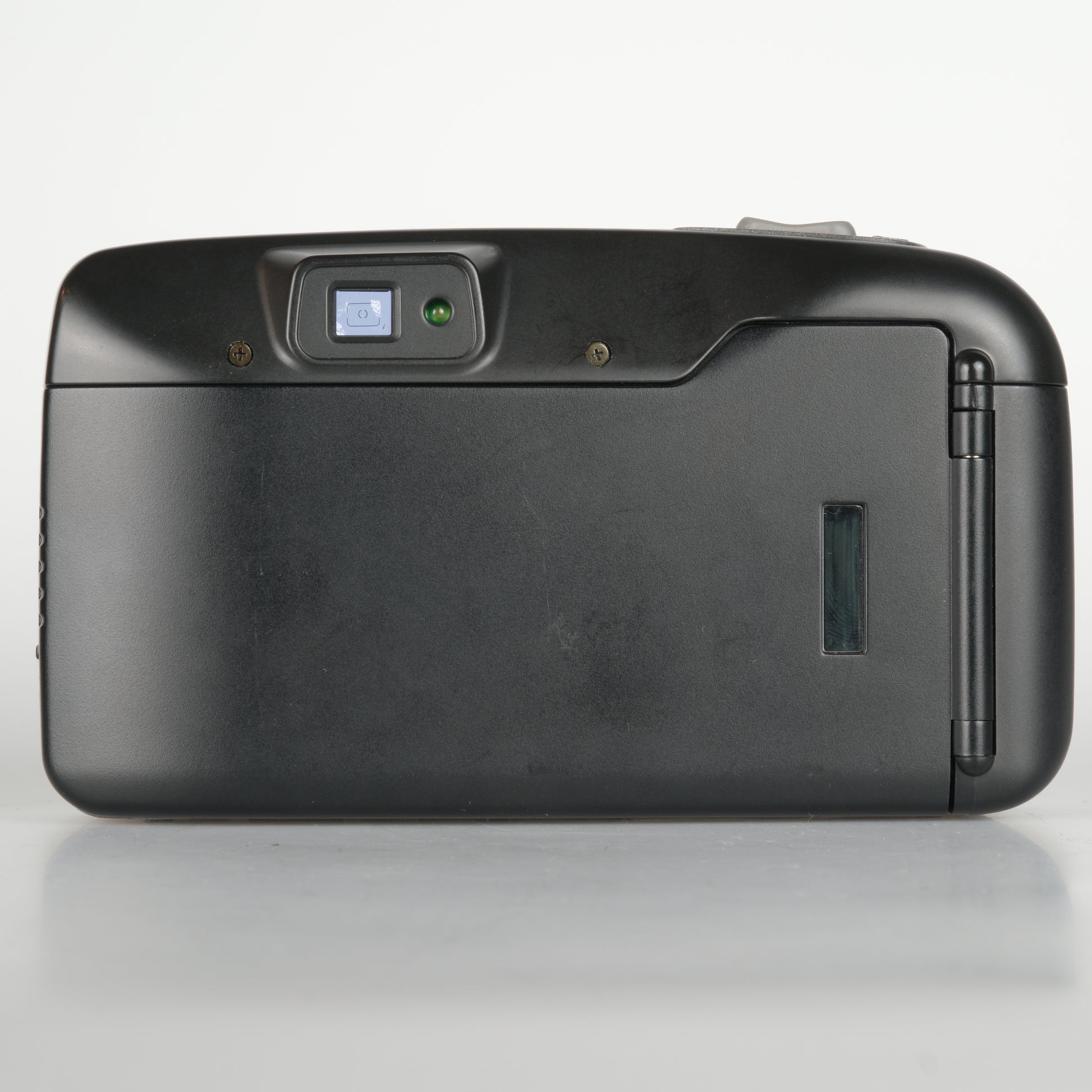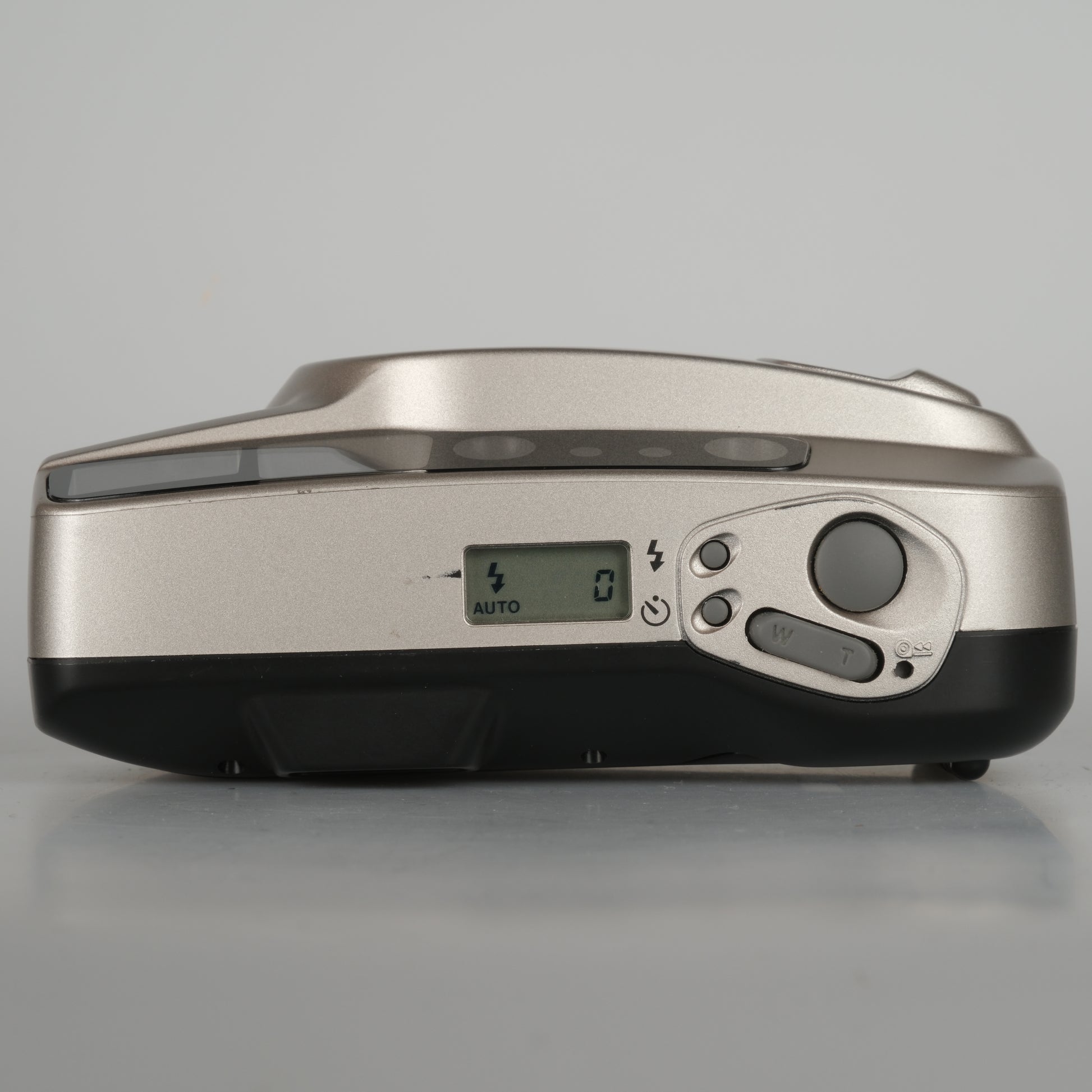 Kompakte 35-mm-Filmkamera mit Autofokus und automatischem Filmtransport. Voll automatische Belichtung und integrierter Blitz mit Abschaltmöglichkeit. Unterstützt DX-kodierte Filme (ISO 100–400). Betrieb mit einer CR123A-Batterie.
