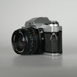 Mechanische 35 mm Spiegelreflexkamera mit Minolta MD-Bajonett, TTL-Belichtungsmessung mit LED-Anzeige, Zeitautomatik (A) und Voll-Manuell. Verschlusszeiten von B bis 1/1000 s, Blitzsynchronisation bei 1/60 s, ISO-Bereich ca. 12–1600. Mechanischer Filmtransport, manuelle Fokussierung.