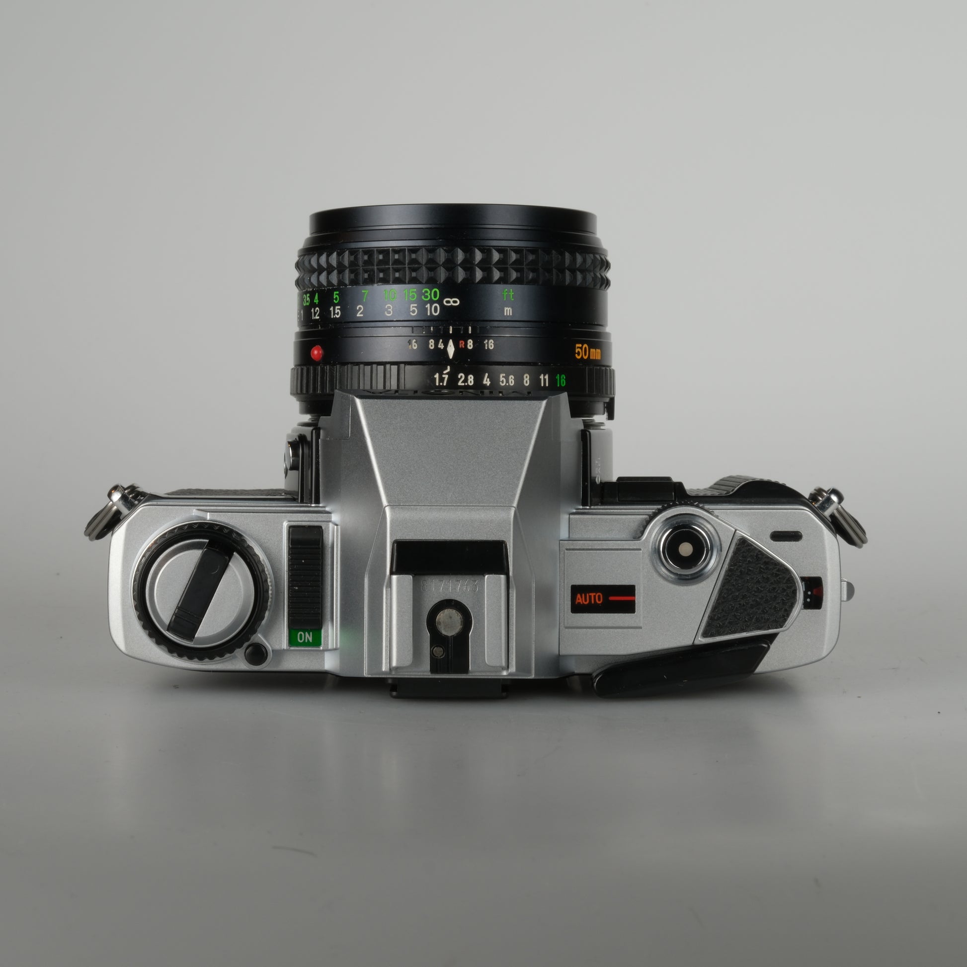 Minolta MD 1:1.7/50 mm (wechselbar, Minolta MD-Bajonett).