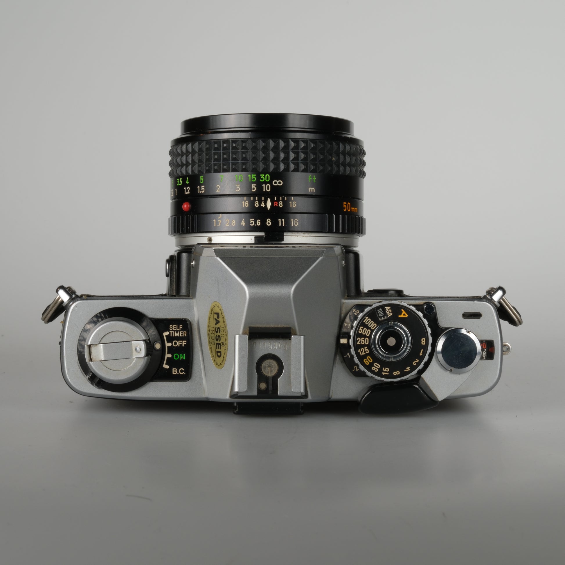Minolta MD 1:1.7/50 mm (wechselbar, Minolta MD-Bajonett).