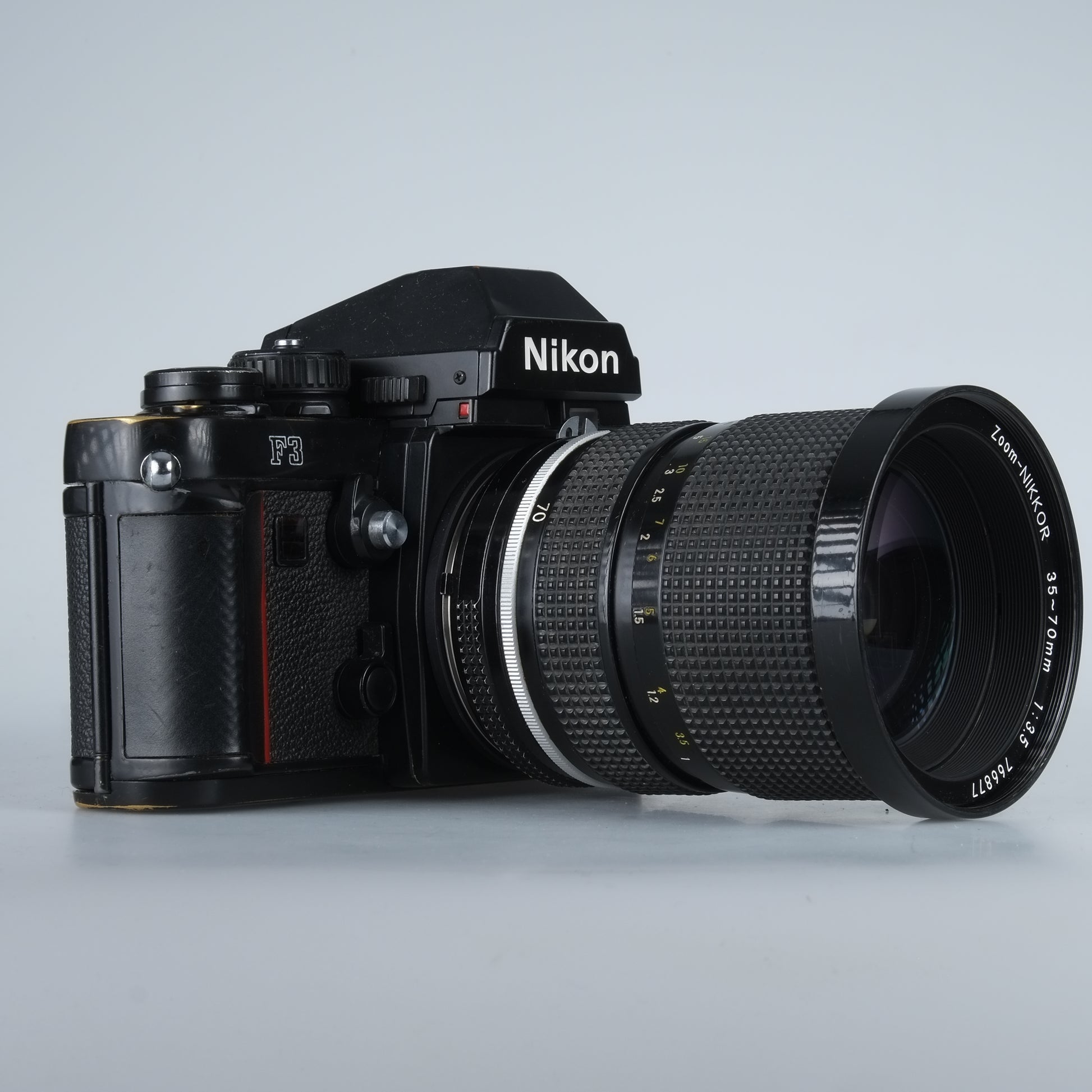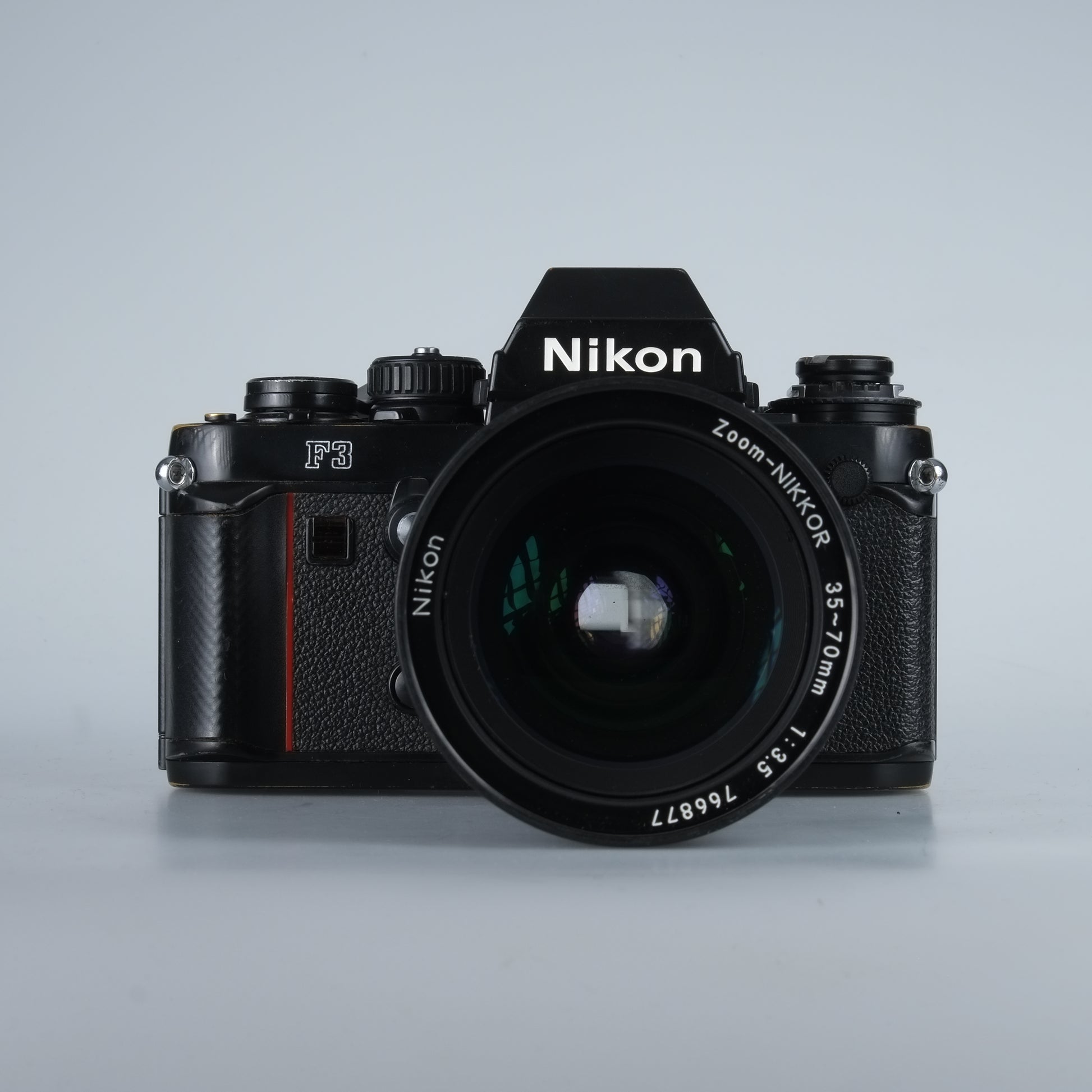 Die Nikon F3 ist eine Spiegelreflexkamera mit Wechselsucher und Wechselmattscheibe. Verschlusszeiten 8 Sek. - 1/2000 Sek. sowie "T" und "B", Titantuch-Schlitzverschluss, horizontal ablaufend, kugelgelagert, mechanische Notzeit 1/60 sek. Interner Belichtungsmesser 12 - 6400 ISO einstellbar. Mittenbetont integrale Zeitautomatik, manueller Modus, Belichtungskorrektur +/- 2 Blenden.