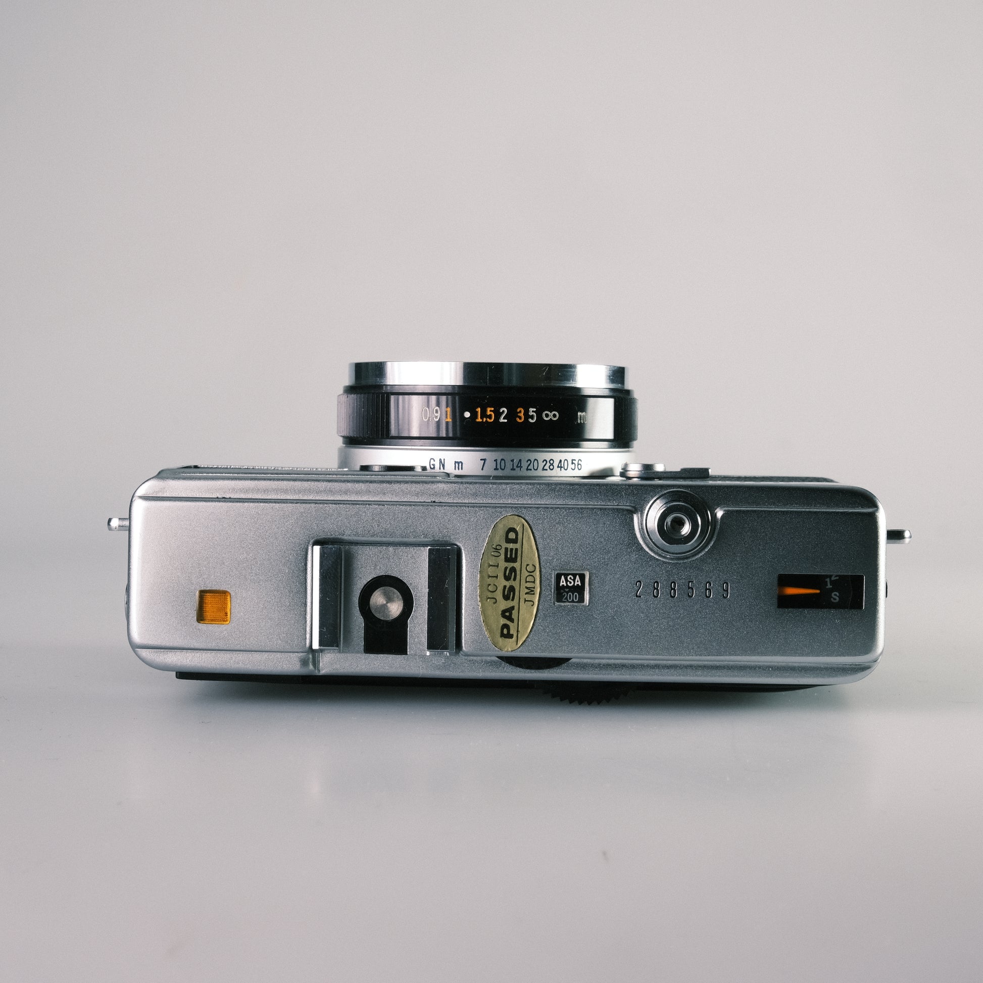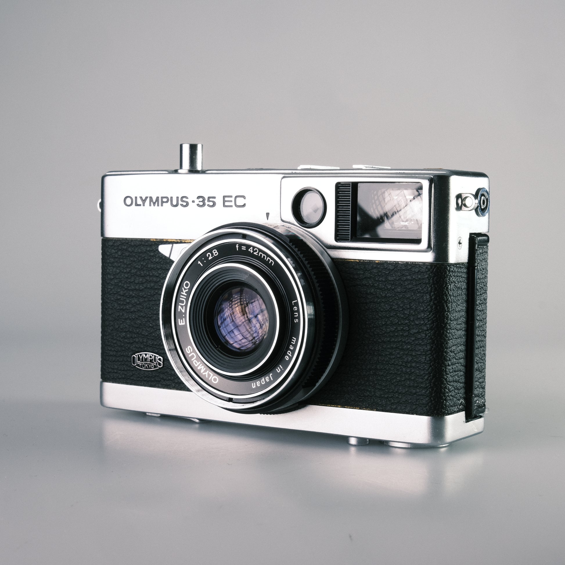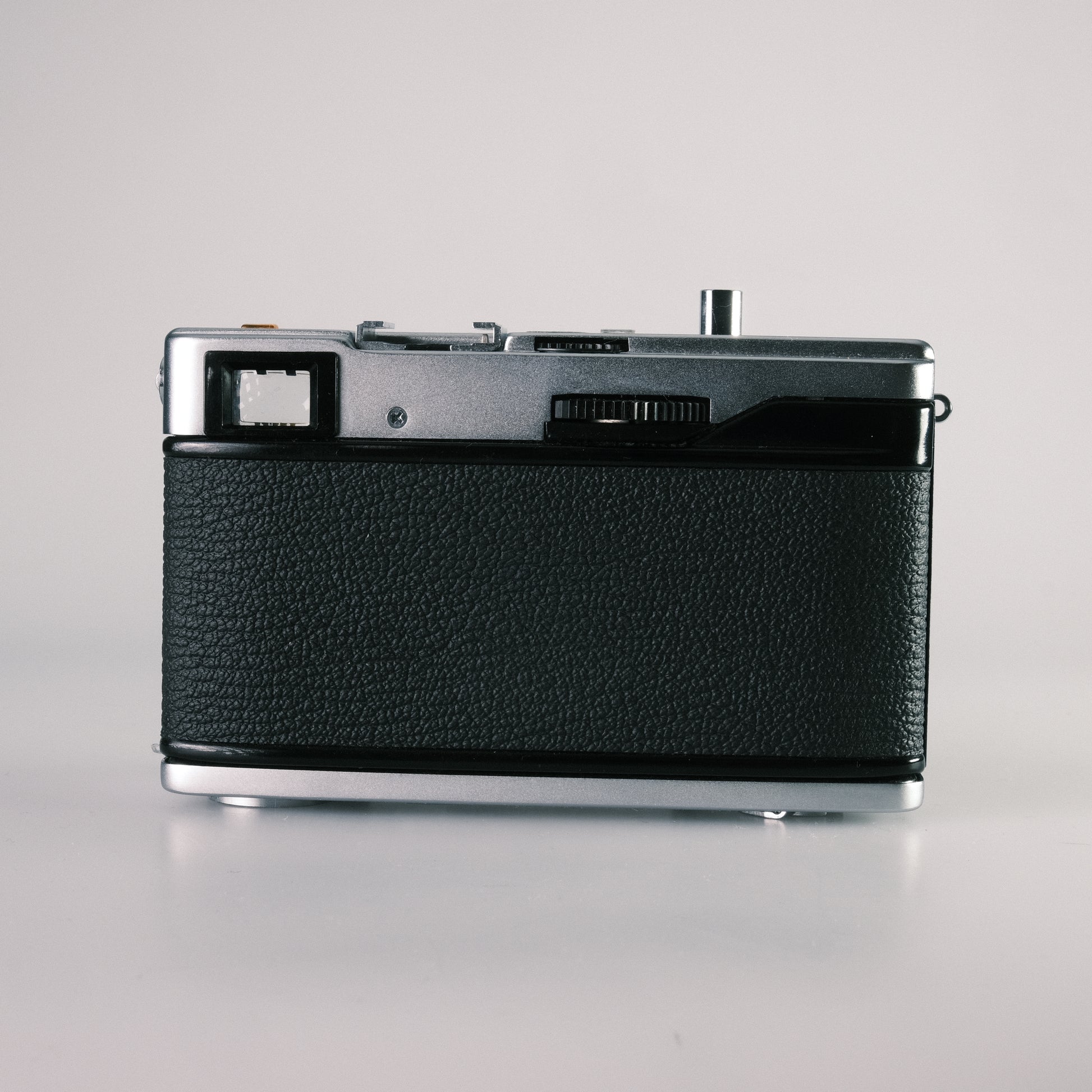 Olympus Sucherkamera mit vollautomatischer Belichtung durch einen Elektronikverschluss mit Verschlusszeiten 1/800 Sek. - 4 Sek. ISO Bereich 25-800.
