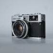 Messucherkamera mit sehr lichtstarkem Objektiv, Verschlusszeiten 1 Sek. - 1/500 Sek. + B, Mechanischer Selbstauslöser, Belichtungsmesser mit Empfindlichkeit 25-800.
