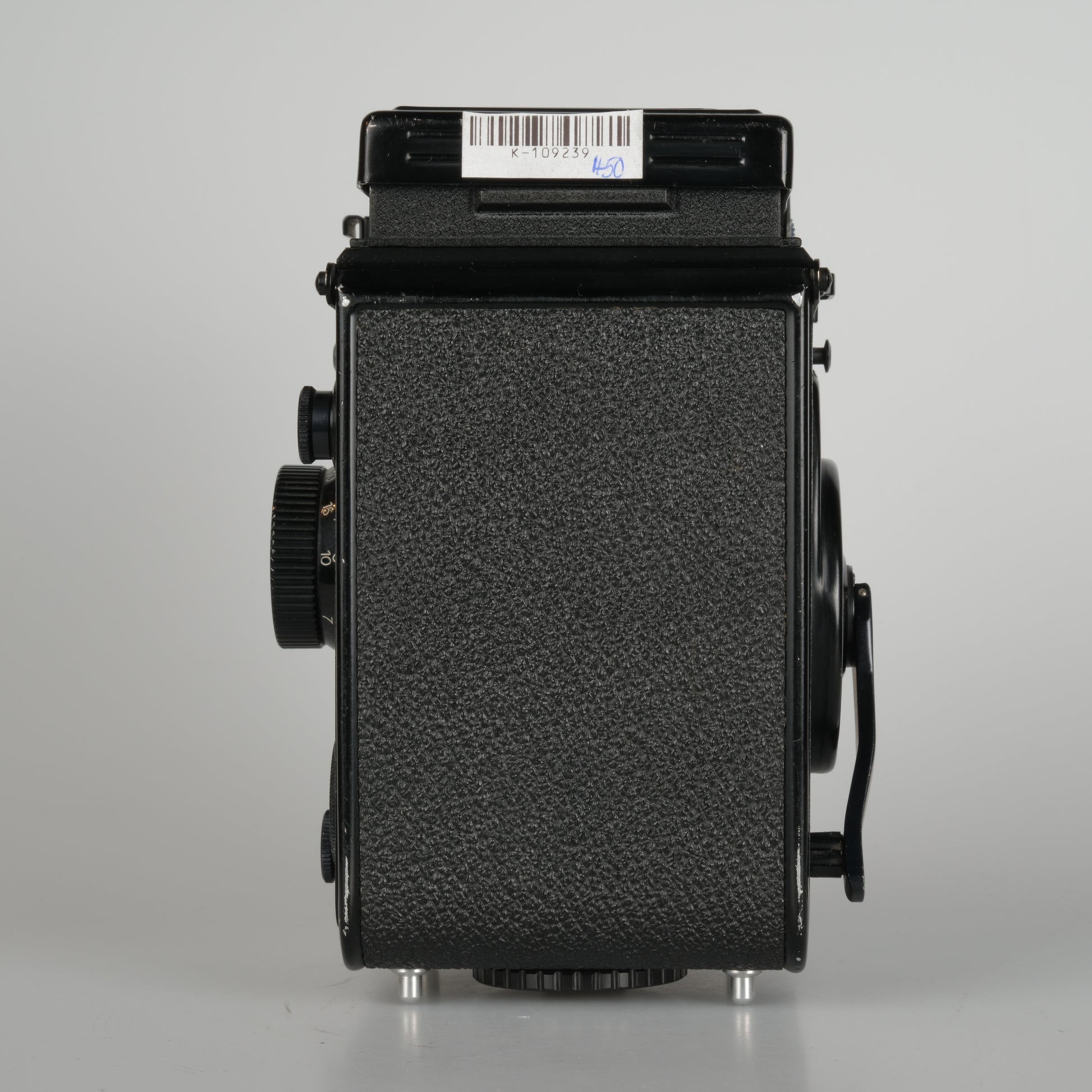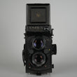 Zweiäugige Spiegelreflexkamera für das Negativformat 6x6. Integrierter Belichtungsmesser ISO 25-400, Verschlusszeiten 1 Sek. - 1/500 Sek. + B.